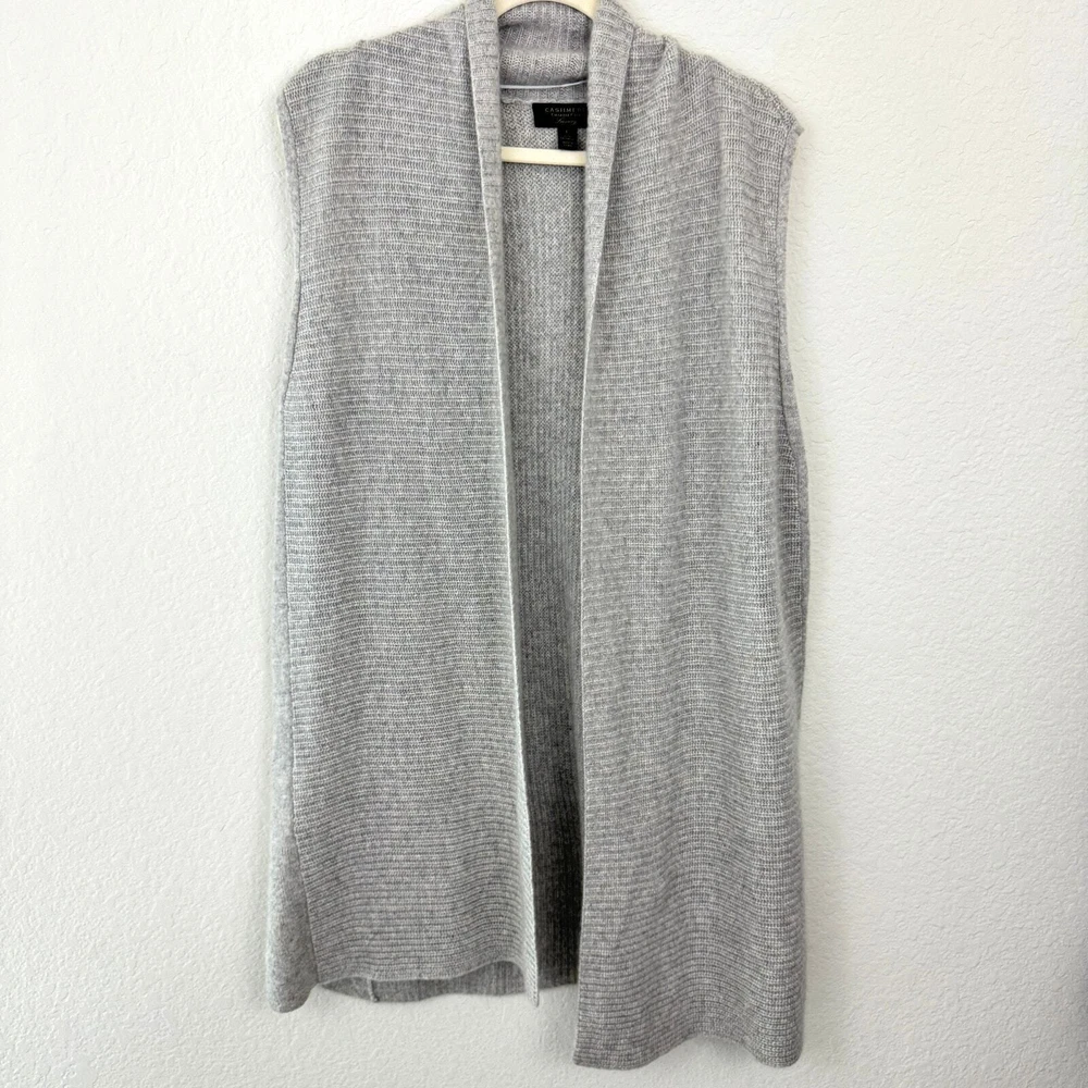 Brand: Charter Club Size: Large Measurements: Please see photos for approximate measurements. Condition: In very good pre-loved condition. Color: light gray Material: 100% cashmere Features: Sleeveless Open front, no closure Ribbed detail Lightweight, soft, knit fabric Tags: cashmere, old money, new money, quiet luxury, luxe, elevated, elevated basics, chic, quality, minimal, neutral, elegant, refined, understated, muted, fall, winter Pre-owned clothing items are properly cleaned, washed, and/or steamed at high heat before listing.