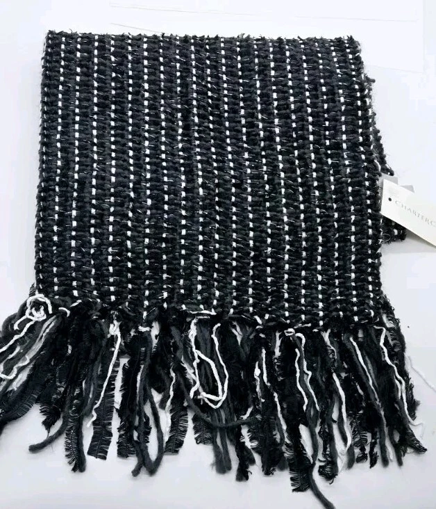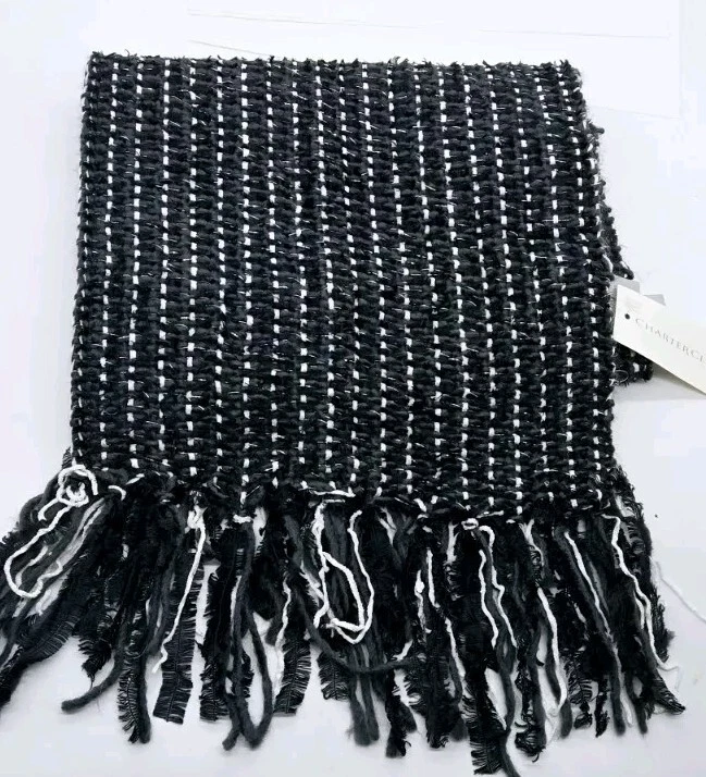 Charter Club Women's Scarf Black Grey White Glitter Flicks Fringed NWT Timeless and Stylish Design Makes a Great Gift! New with Tags - Retail $42.00 Scarf Measures Approximately 10" x 72"; Fringe at Ends 76% Acrylic, 14% Poly, 9 % Rayon 1% Other Fiber; machine wash cold Disclaimer: Product color may vary slightly due to your monitor settings.