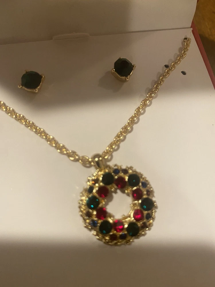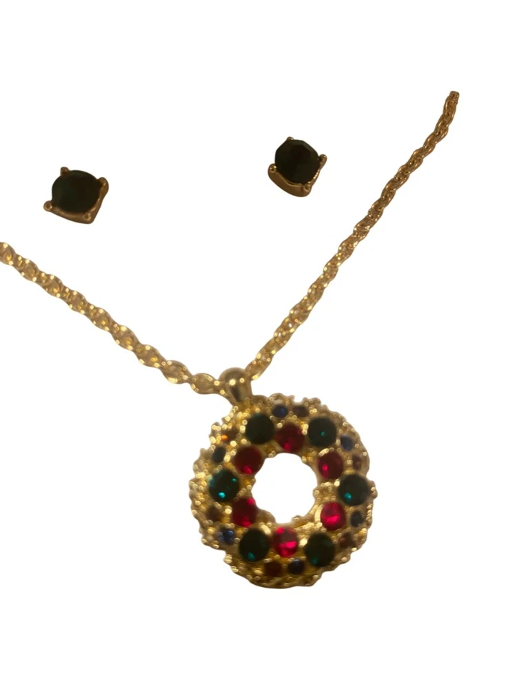 HomeCharter Club gold tone multi color wreath pendant necklace & earrings