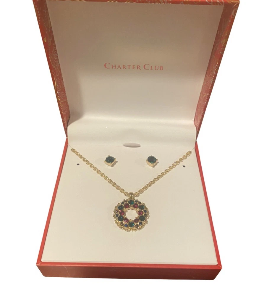 Charter Club gold tone multi color wreath pendant necklace & earrings