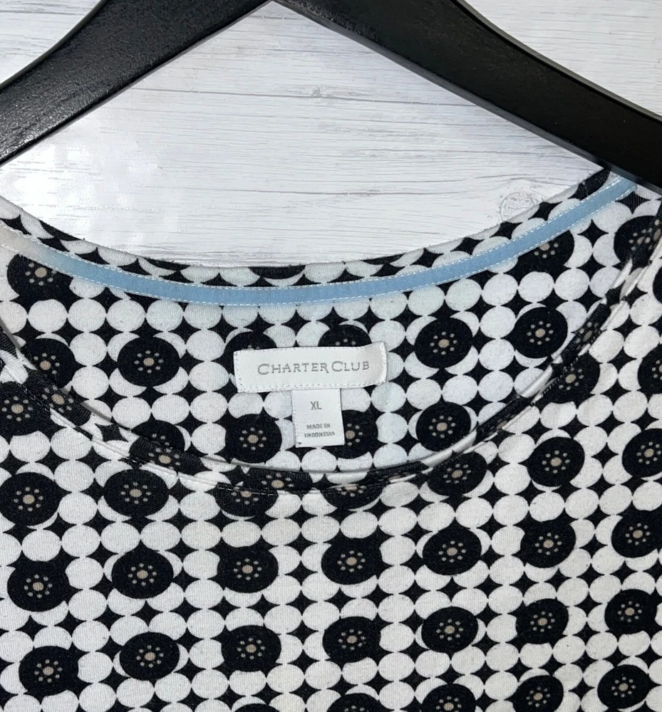 Sleeve Length: Long Sleeve Type: T-Shirt Color: White Neckline: Crew Neck Brand: Charter Club Material: Cotton Blend Department: Women Size Type: Regular Size: M Style: Basic Pattern: Geometric