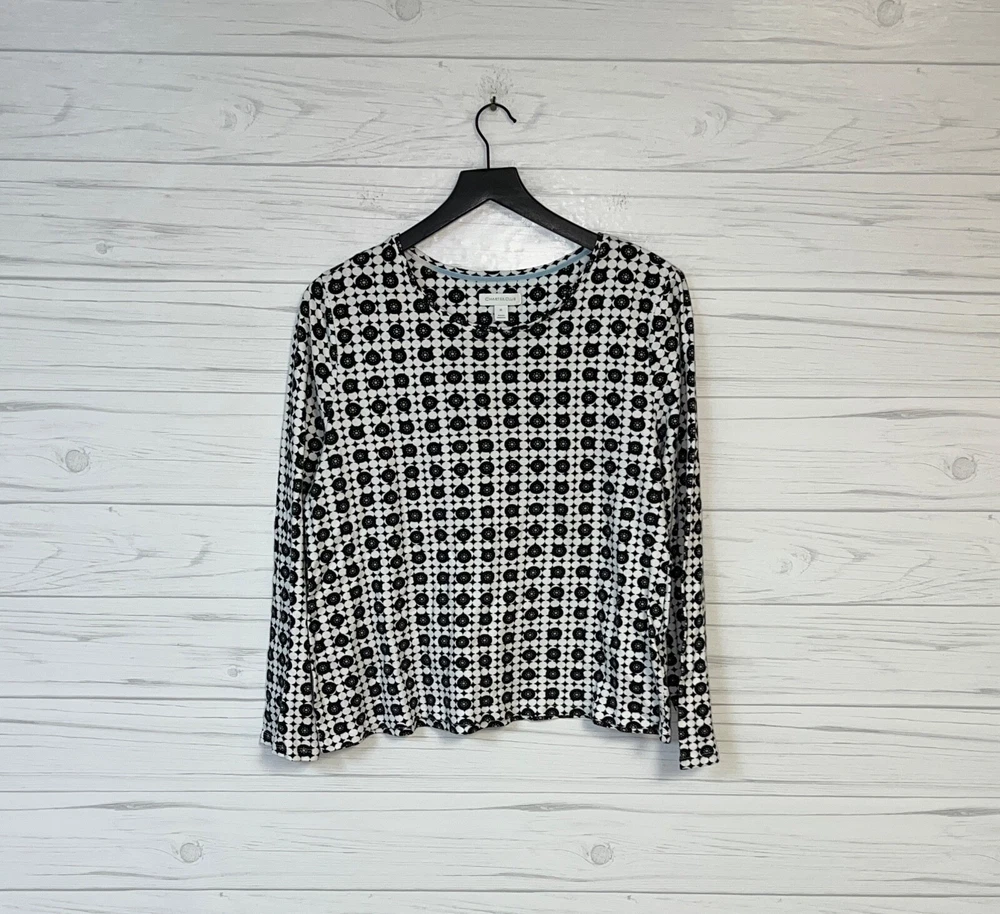Charter Club t shirt womens size medium crew neck long sleeve white patterned