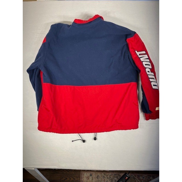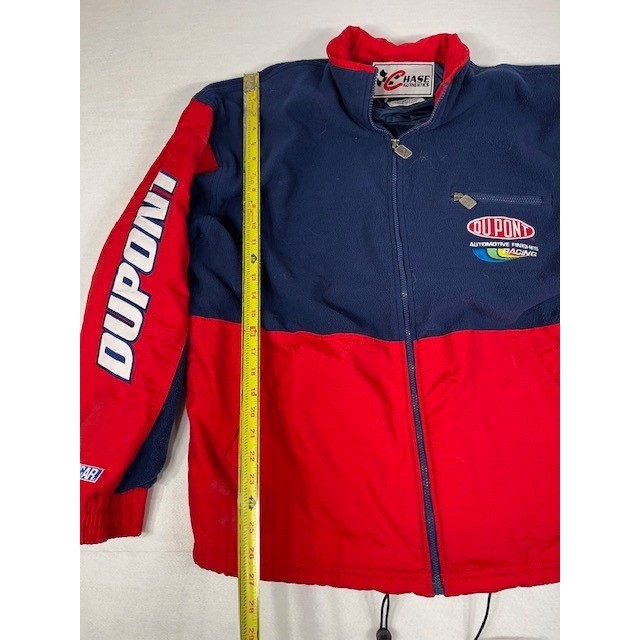 Embrace the thrill of the race with this dynamic Chase Authentics jacket, designed for the ultimate fan. Feel the cozy embrace of its fleece lining as you showcase your passion for NASCAR and Dupont's racing legacy. The vibrant combination of deep navy and bold red creates a striking visual, while the iconic Dupont logo proudly displayed on the chest and sleeve evokes a sense of speed and victory. Measurements: • Chest (pit to pit): 25 inches • Length (shoulder to hem): 27 inches • Sleeve Length (shoulder seam to cuff): 25 inches Style: Varsity Jacket Outer Shell Material: Polyester Department: Men Closure: Zip, Drawstring Fabric Type: Fleece Insulation Material: Polyester Occasion: Casual Performance/Activity: Racing Keywords: Chase Authentics, Dupont Racing Jacket, NASCAR Jacket, Mens XL Jacket, Racing Apparel, Fleece Lined Jacket, Blue Red Jacket, Vintage Racing, Motorsports Jacket, Automotive Racing, Jeff Gordon Jacket, NASCAR Memorabilia, Team Jacket, Gorpcore