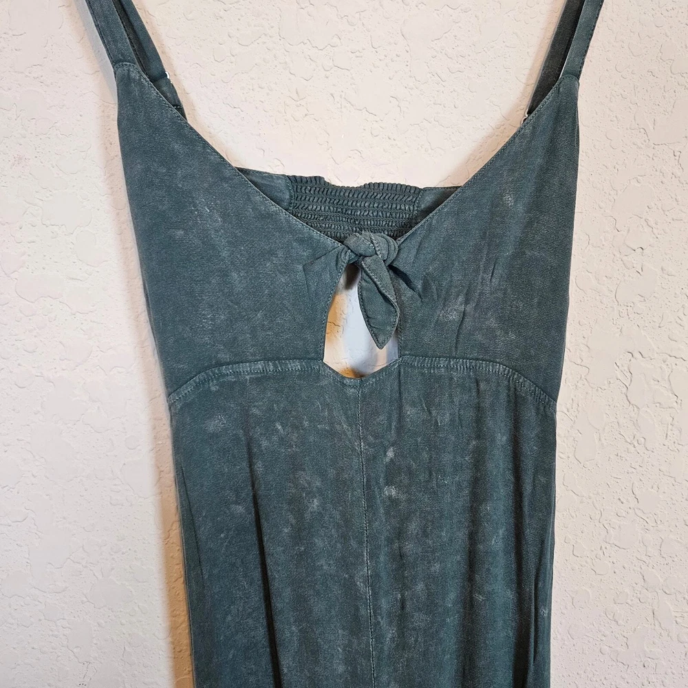 Chaser Green Open Back Spaghetti Strap Maxi Dress Spaghetti strap Adjustable strap Ties between the bust Cutout in the front A little bit of smocking at the back Open Back Slight high low hem Mineral wash Viscose Spandex Size S Small Approximate Measurements: pit to pit - 14.5" across waist - 13" hips - 17" length - 57 - 59" New with tags, no flaws. Smoke free, dog friendly home. classy trendy spring summer vacation weekend day off moss earth tone boho chic festival