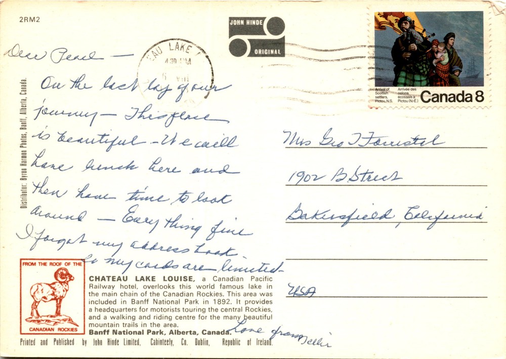 MAKE AN OFFER. THE MORE YOU BUY THE BETTER DEAL I WILL ACCEPT The postcard features a photo of Chateau Lake Louise in Banff National Park, Alberta, Canada, taken by Don Harmon. The Chateau Lake Louise is a historic Canadian Pacific Railway hotel that overlooks the stunning Lake Louise in the Canadian Rockies.