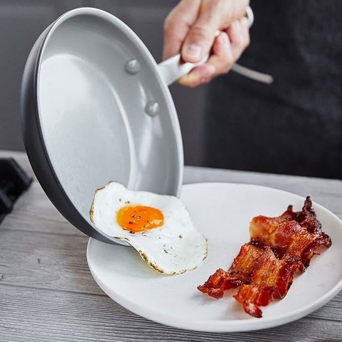 GreenPan’s Thermolon healthy ceramic nonstick coating is free of PFAS, PFOA, lead, and cadmium, so it will never release toxic fumes, even if it’s accidentally overheated Metal utensil safe, this collection's diamond-reinforced coating is incredibly durable Tough Hard Anodized Body is scratch-resistant and designed to stand up to daily demands Oven and broiler safe up to 600°F Dishwasher safe for easy cleanup