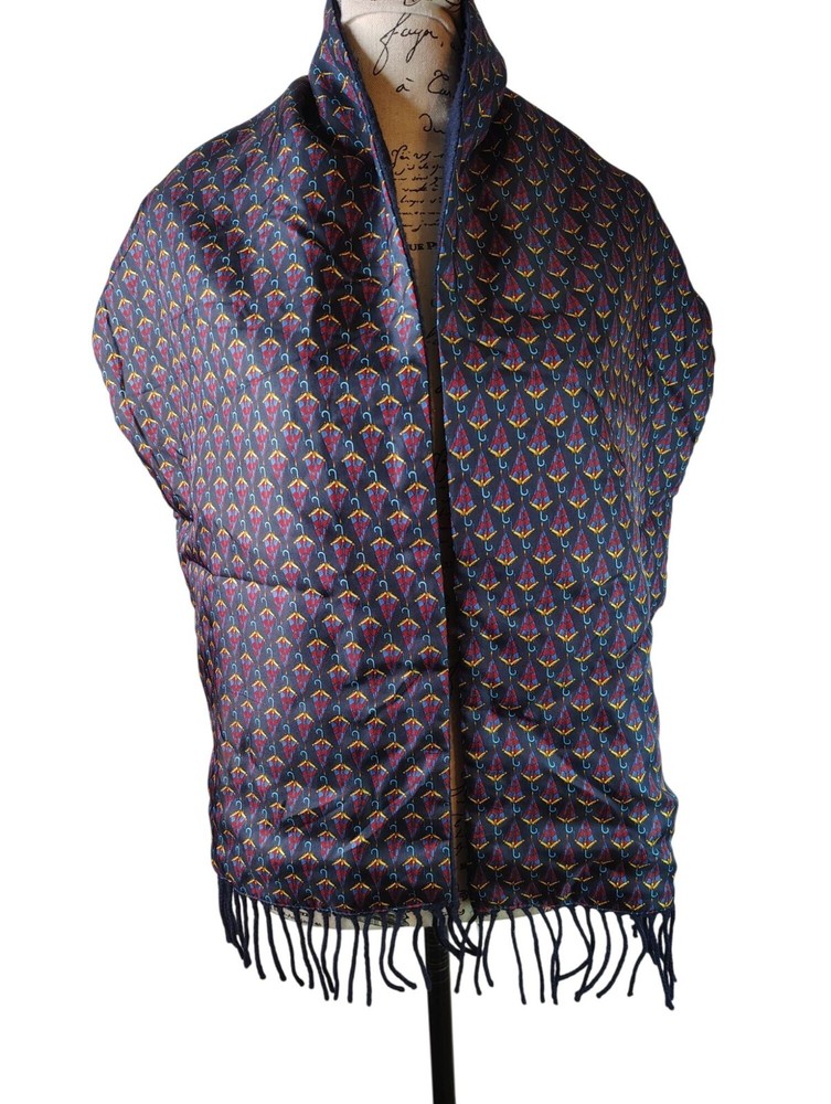 Elevate your style with this exquisite Chatsworth scarf featuring a unique umbrella design. Made from luxurious silk and lambswool, it offers warmth and sophistication with a delicate fringe finish. It measures 56" in length and 11" in width. Please see all photographs as they are part of the description. Shipped with USPS Ground Mail. L33L