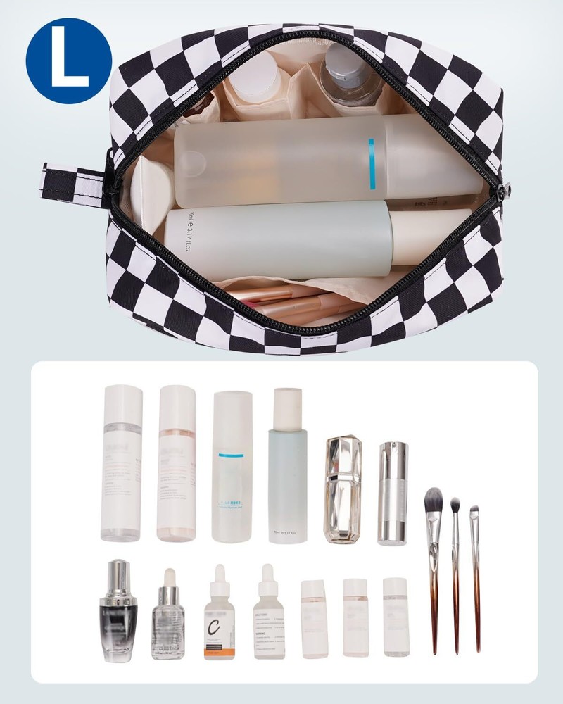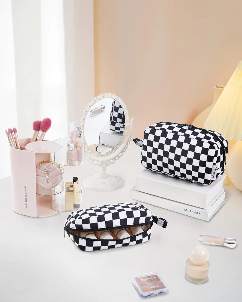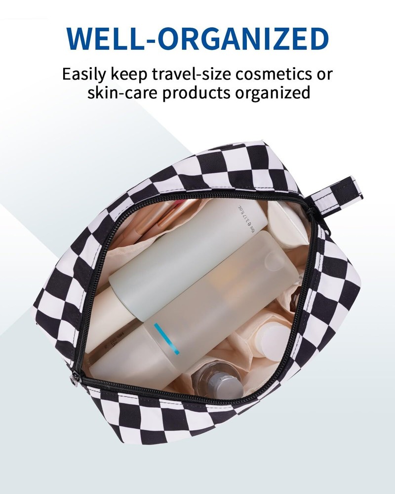 $ 7.33Checkered Travel Makeup Bag Cosmetic Organizer Toiletry Pouch Wit Design