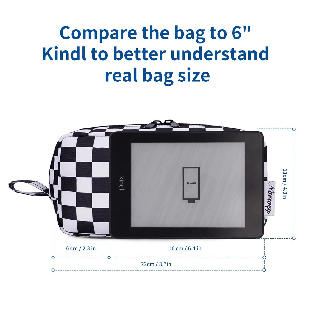 Narwey Checkered Makeup Bag Travel Cosmetic Bag Organizer Small Toiletry Bag Make Up Bags with Organized Pockets for Women (Black Checkerboard, Large) DECENT SIZE. Please double-check the size before purchasing, especially the smaller option, to ensure it meets your expectations and avoid returns. Dimensions of large version: 9.8"x4.3"x6.3”/22x8x11 cm, weighs only 3.9 oz. Thoughtful size, not too big but not too small, is great for someone who brings a fair amount of makeup/beauty products WELL-ORGANIZED COMPARTMENTS. Practical main compartment with 5 inner small pockets could neatly organize your makeup. Main compartment could easily hold travel-size toiletries or skin-care products. It could fit 3 brushes, eyeliners, foundation, concealer, lipsticks, blushes, powder, eyeshadow pallet, mascara, lash curler, sponges, sunscreen, 3oz lotion, cream, facial cleanser and toothpaste EXTREMELY VERSATILE. The use is endless. More than makeup bag or travel toiletry bag, great for storing ear phones, charging cables and office-type supplies as well CONSISTENT QUALITY. Water-resistant and durable fabric protects your gear from spills. Durable and smooth zippers ensure durability. Convenient side handle with great stitching make it easy to hang and carry. Every detail is delicately made GREAT GIFT IDEA. Vibrant colors and patterns to Choose. Great holiday gift for your friends and family members SHIPPING Domestic Buyers - We have confidence in our products, but if you are not fully satisfied please contact us within 30 days of purchase and you will get full refund. - We ship within 3 business days of payment, usually sooner - We offer FREE shipping on all orders! - We only ship to the lower 48 states, no APO/FPO addresses or PO Boxes allowed International buyers – please note: Import duties, taxes, and charges aren't included in the item price or postage cost. These charges are the buyer's responsibility. - Please check with your country's customs office to determine what these additional costs will be prior to bidding or buying. * Order Cancellation Policy ** You can return a product for up to 30 days from the date you purchased it. 1. The seller reserves the right to cancel the special case only due to eBay cancellation fee. 2. The decision of seller is the final. 3. The seller will respond to the cancellation request within 2 business days. Please wait for the result of cancellation. 4. In case the cancellation is not completed by some reasons, the buyer can follow the options below to get the refund. 4.1 The buyer can reject the item when it arrives. 4.2 The buyer can send the item back to the seller within 30 days If the buyer receives item (USA Shipment ONLY). The seller will provide the FREE return label to the buyer when the buyer opens " Return Item" case on eBay by using the reason as "Change my mind" ONLY. 5. When buyer has placed the order. The order will be processed and completed by automatic warehouse system within 5 minutes. In case that buyer sends the cancellation request after 5 minutes of placing the order, the request will be rejected. **Sending direct message to cancel the order is not allowed for every case.* Return Policy For the return case - If buyer would like to return the items for refund or replacement, please CONTACT SELLER to receive the free return label from seller. The refund or replacement will be processed with the tracking number of return label which is provided by seller only. The other ways of return which are not approved by seller will not be processed for the refund or replacement.