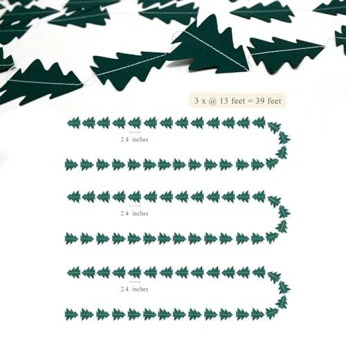 Return Policy Fast Delivery Trusted seller Cheerland Dark Green Tree Garland for Woodland Theme Party Decoration Xmas Christmas Hanging Streamer Backdrop Tree Garland Decor for Birthday Party Baby Shower Christmas New Year Party Decorations Product Description Package Includes: Set of 4 strings of dark green paper garlands with a silver thread, each featuring 40 tree-shaped cutouts in a rich dark green color Unique Design: The dark green tree cutouts paired with the silver thread create a natural and festive look, bringing the beauty of the forest into your space Wide Applications: Perfect for Christmas, New Year celebrations, birthday parties, graduation parties, baby showers, bridal showers, engagement parties, anniversaries, retirement parties, and parties with nature, wildlife, forestry, or woodland themes; Suitable for homes, schools, shops, offices, community centers, and outdoor venues. Easy to Use: Unravel with care to avoid tangling, no DIY required. Hang as a backdrop, on walls, mantels, windows, or ceilings; Cut into shorter lengths or join multiple strings for extended decoration. Set up as a festive curtain for doorways or entrances to create an inviting atmosp. Attach to tables or counters for a whimsical table skirt at parties or events. Wrap around stair railings or banisters to add a touch of celebration to your home or venue. Quality Guarantee: Made with high-quality dark green cardstock and a sturdy silver thread, ensuring durability and longevity; Backed by our 100% satisfaction and refund policy Shipping Returns Payment Shipping Shipping is FREE to all addresses other than APO/PO boxes in the lower 48 states. All our stock ships from US-based warehouses. Shipped via USPS or UPS (depending on location and package weight) Unless stated otherwise, all orders will ship within 24-72 hours of your payment being processed. Check our feedback to see the great reviews of FAST shipping we offer. Returns Seller does not accept returns Payment We currently accept payment via eBay managed payments only. Once payment is cleared, we will dispatch your shipment within 1-3 business days. Please refer to the "Shipping" tab for more information regarding shipping speed to your destination.