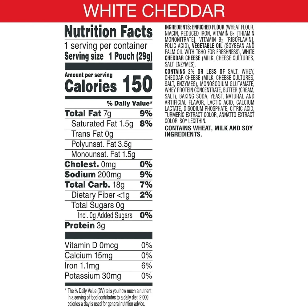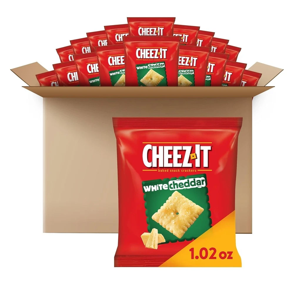BURST OF FLAVOR - Light and crispy bite-sized snack crackers made with the flavor of white cheddar cheese and salt GREAT SNACK TO KEEP IN THE PANTRY - Made with 100% real cheese aged for a bold taste; a classic family-favorite salty snack that's perfect for kids and adults PACK A SNACK - Our cheesy baked crackers make a delicious convenience treat anytime & anywhere; travel, hiking, sporting events & school CRACKER FOR ANY OCCASION - Makes a tasty bite at home or on the go; ideal picnic food items or crackers for kids sporting events, pack a snack for work or in a school lunchbox PORTABLE PACKAGING - Snack crackers box contains 40, 1 oz individually wrapped bag of ready-to-eat of Cheez-It White Cheddar baked crackers