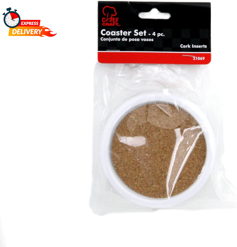 Chef Craft 4-Inch Cork Coasters Set of 4 with Durable Plastic Frame