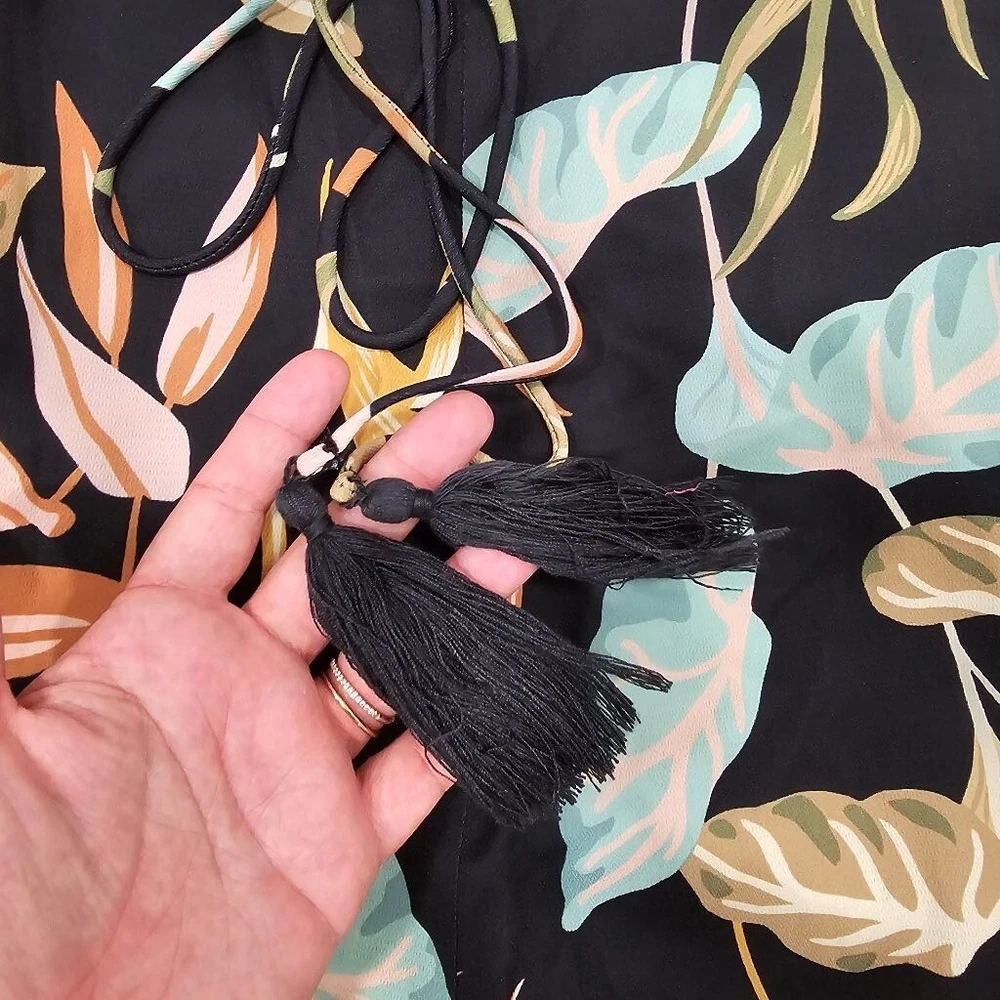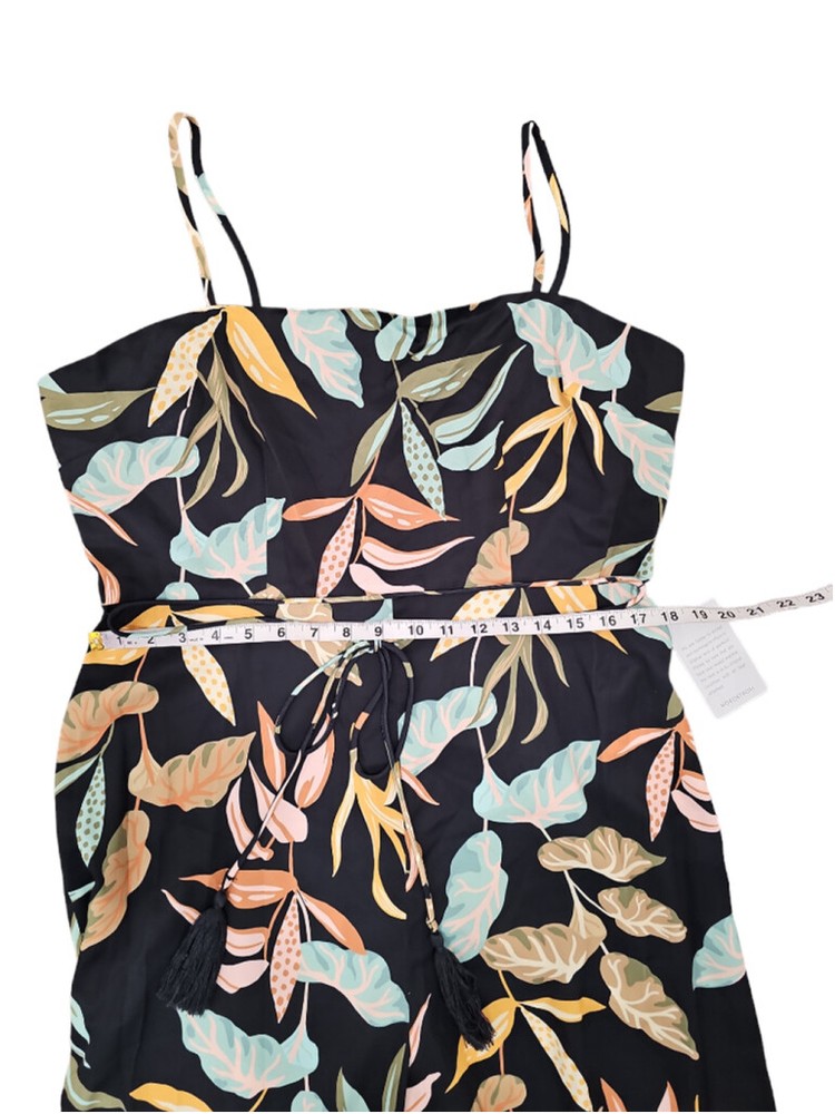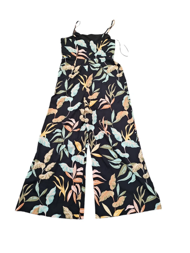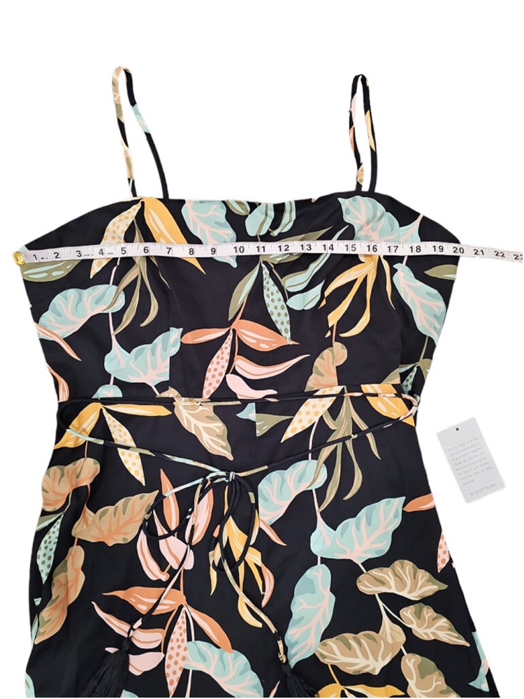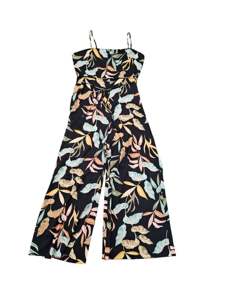 Wild blooms add eye-catching appeal to this sophisticated sleeveless jumpsuit styled with thin straps, a tassel-tie waist and drapey wide legs. - Back zip closure - Square neck - Spaghetti straps - Tie waist - Partially lined - 100% polyester - Hand wash, line dry Box103 5752