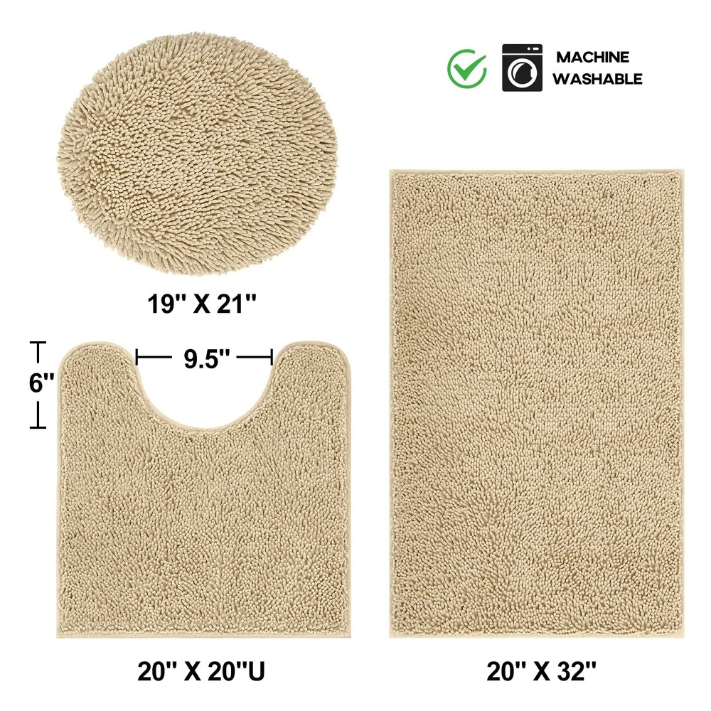 3-Piece Bathroom Rug Set with U-Shaped Toilet Mat & Absorbent Shower Rugs