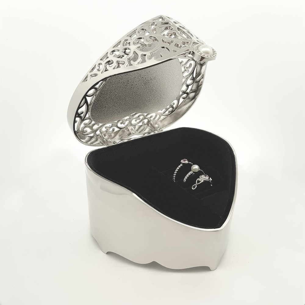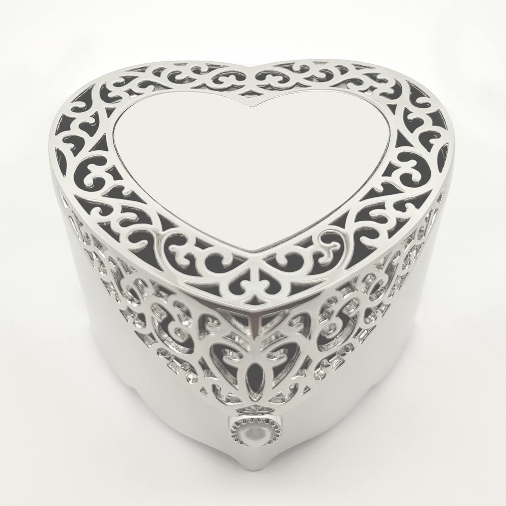Cherished Moments Bereavement Memorial Gift Jewelry Keepsake Box with Heart-Shaped Filigree Design for Sympathy Gift Loss of Loved One, Loss of Dad, Mom, Wife, Husband, Silver Toned - Buy Now with Fast Shipping! Cherished Moments Bereavement Memorial Gift Jewelry Keepsake Box with Heart-Shaped Filigree Design for Sympathy Gift Loss of Loved One, Loss of Dad, Mom, Wife, Husband, Silver Toned Product Details Color: Silver Brand: Cherished Moments Material: Metal Style: Memorial-Filigree Special Feature: Engraved Recommended Uses For Product: Ring Product Dimensions: 3.5"D x 3"W x 2"H Target Audience: Girls Shape: Heart Finish Type: Polished Color: Silver Brand: Cherished Moments Material: Metal Style: Memorial-Filigree Special Feature: Engraved Recommended Uses For Product: Ring Product Dimensions: 3.5"D x 3"W x 2"H Target Audience: Girls Shape: Heart Finish Type: Polished Inner Material: Felt Number of Drawers: 1 Number of Compartments: 1 Jewelry Storage Type: Jewelry Box Number of Items: 1 Manufacturer: Cherished Moments Occasion: Friendship Day, Memorial Day Mounting Type: Table Top Closure Type: Pearl Part Number: SJB-Fil-Heart-04-Mem-Angel Item Weight: 10.5 ounces Country of Origin: China Finish: Polished Item Package Quantity: 1 Special Features: Engraved Batteries Included?: No Date First Available: November 4, 2022 Key Features ✅ PREMIUM QUALITY - Keep her beautiful jewelry safe and organized in this heart-shaped silver toned jewelry box with precious pearl closure. This special keepsake box measures 3.5" x 3" x 2". ✅ ENGRAVED MESSAGE This box features an engraved message "A Piece of My Heart is in Heaven" accented with symbolic angel wings. The engraving is created with our high-quality diamond tip engraver ensuring that the message is beautifully displayed. ✅ MEMORIAL GIFTInspirational sympathy gift for loss of loved one or bereavement gift in memory of mother, father, husband, family member, or friend. ✅ DETAILS Soft felt lining inside the box to protect her special treasures with a unique ring holder to store her rings. ✅ JEWELRY GIFTING -(Jewelry not included) She will love an inspirational piece of jewelry with this special box. Check out our store to see our collection of sterling silver jewelry - a Keepsake she will treasure forever! Product Description