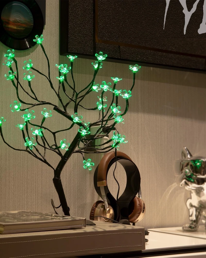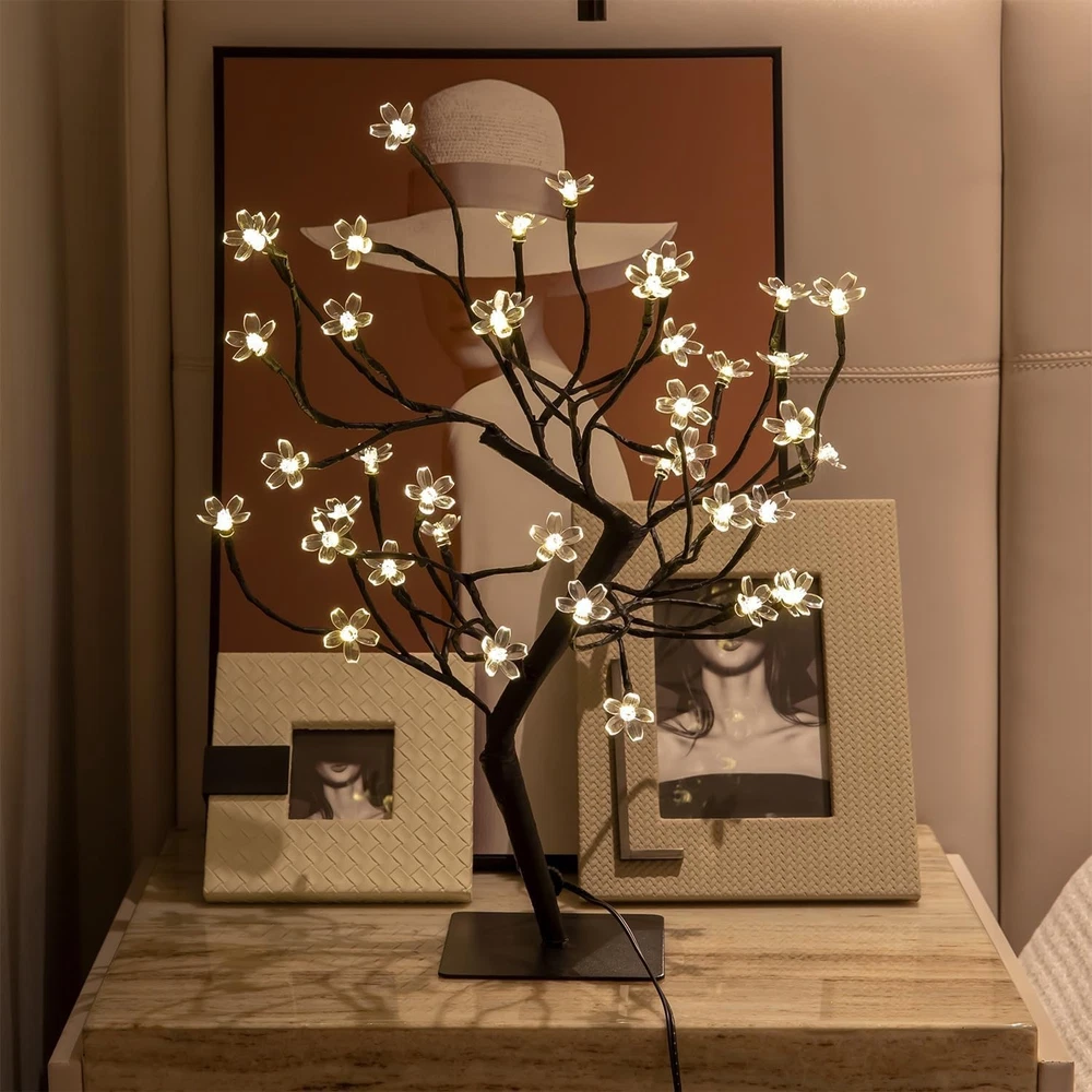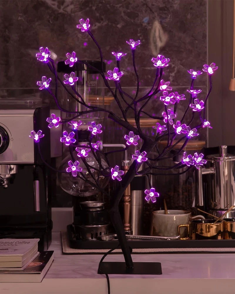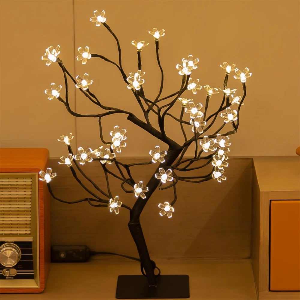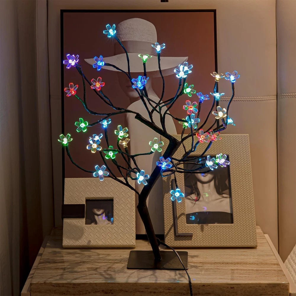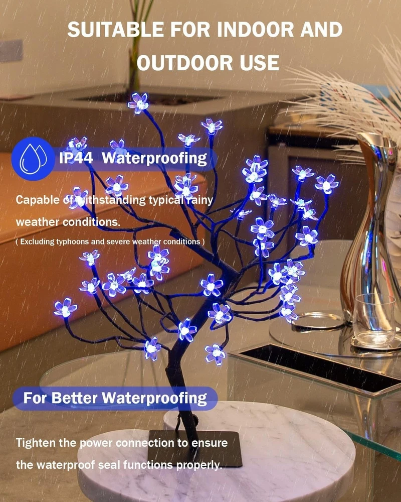 Specification: Overall height 20 inch, 40 LED lights, RGB Lights with remote control; Power adapter is included. REMOTE CONTROL AND TIMER ARE INCLUDED: the powerful remote control not only allows you to select your favorite color from hundreds of color options, but also can adujust the brigtness that you feel confortable. Many lights motions are also available at one click. Lights are changing automatically, and more for you to explore. Thanks to the timer, one can schedule lights on for 4/6/8 hours daily. Applications: Perfect for home, bedroom, living room, balcony, balcony window, office room, children's room, restaurant, porch, pavilion, shelf, for Christmas, New Year, parties, birthday parties, wedding ceremony, dinner party decoration. Bendable branches for DIY: Adjustable branches can be customized for different shapes. You can bend the branches into any shape as you like. Never let anyone or anything to limit your creative, customize your unique tree looking today. Safety: tree light is driven by Worry-free UL listed power source. Electric will not over heat even lit for long use. Long life span up to 25,000 hours.