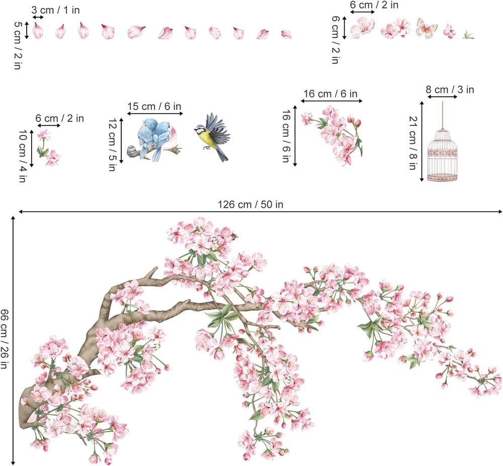 It can be stuck onto any clean, dry, non-textured smooth surfaces: walls, windows, tiles, furniture, mirrors, even your refrigerators. decalmile wall stickers are made of high quality, bright and colourful, easy to peel and stick, removable and waterproof. decalmile flower branch wall decals are perfect to decorate kids room, bedroom, living room, window and kitchen. Come in 2 sheets, sheet size: 30cm × 90cm (11.8" × 35.4"), recommend finished size: 124cm x 94cm(48.81" x 37.00") or depending on your preference to DIY. If you're not satisfied with your purchase or have any problems on installation, please feel free to contact us and we will reply and help solve problems within 24 hours. Product Description decalmile Pink Cherry Blossom Wall Decals Add Chill Vibes Various Choices with Unique Design decalmile stock a huge selection of stunning wall stickers catering to all ages and tastes. We promise all stickers are non-toxic and top quality PVC material Wall Decals for Sweet Home Become an interior decorator and transform your living space from ordinary to extraordinary with decalmile unique wall stickers. Pink Wall Decor Add to Cart Add to Cart Add to Cart Add to Cart Add to Cart Add to Cart Add to Cart Customer Reviews 4.5 out of 5 stars 99 4.8 out of 5 stars 167 4.6 out of 5 stars 198 4.7 out of 5 stars 1,107 4.6 out of 5 stars 510 4.4 out of 5 stars 387 4.4 out of 5 stars 387 Price $18.99 $ 18 . 99 $19.99 $ 19 . 99 $12.89 $ 12 . 89 $11.99 $ 11 . 99 $21.99 $ 21 . 99 $12.99 $ 12 . 99 $11.39 $ 11 . 39 Removable ✔ ✔ ✔ ✔ ✔ ✔ ✔ Waterproof ✔ ✔ ✔ ✔ ✔ ✔ ✔ Material PVC PVC PVC PVC PVC PVC PVC Installation Type Peel & Stick Peel & Stick Peel & Stick Peel & Stick Peel & Stick Peel & Stick Peel & Stick Theme Tree Blossom Tree Flower Flower Blossom Tree Vine Vine Flower Wall Decor Add to Cart Add to Cart Add to Cart Add to Cart Add to Cart Add to Cart Customer Reviews 4.6 out of 5 stars 20 4.3 out of 5 stars 55 4.4 out of 5 stars 40 4.6 out of 5 stars 82 4.6 out of 5 stars 207 4.5 out of 5 stars 155 4.6 out of 5 stars 1,849 Price $17.99 $ 17 . 99 $12.99 $ 12 . 99 $17.59 $ 17 . 59 $12.99 $ 12 . 99 $12.99 $ 12 . 99 $12.99 $ 12 . 99 $11.99 $ 11 . 99 Removable ✔ ✔ ✔ ✔ ✔ ✔ ✔ Waterproof ✔ ✔ ✔ ✔ ✔ ✔ ✔ Material PVC PVC PVC PVC PVC PVC PVC Installation Type Peel & Stick Peel & Stick Peel & Stick Peel & Stick Peel & Stick Peel & Stick Peel & Stick Theme Flower Flower Flower Flower Flower Sunflower Sunflower What types of surfaces can the wall decals be applied to? Our wall stickers can be applied to just about any clean and smooth surface that is free of dust, grease, or other contaminants. DecalMile wall stickers may not adhere to heavily-textured surfaces but can adhere to lightly textured wall. How long will my wall sticker stay up? DecalMIile wall stickers are not intended for permanent application. However, they can last for months or years depending on the surface and environment. Will the wall decals damage my wall? When walls have been prepared as recommended and proper application, most people have no wall damage issue while removing. Please be aware that there is potential for wall damage. Freshly painted walls should be allowed to cure for at least 4 weeks. I installed a wall decal but it is starting to peel off. What do I do? If part of a wall sticker starts to come off a surface, you can use washable glue, such as a glue stick or wallpaper paste or glue, to reattach it.