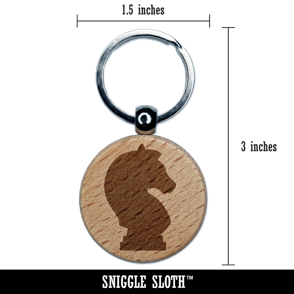 Chess Knight Piece Engraved Wood Round Keychain Tag Charm