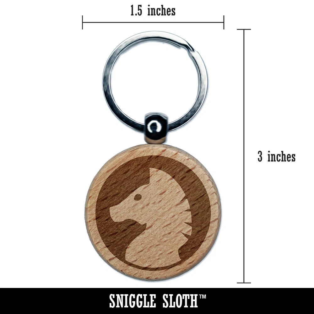 Chess Piece White Knight Engraved Wood Round Keychain Tag Charm