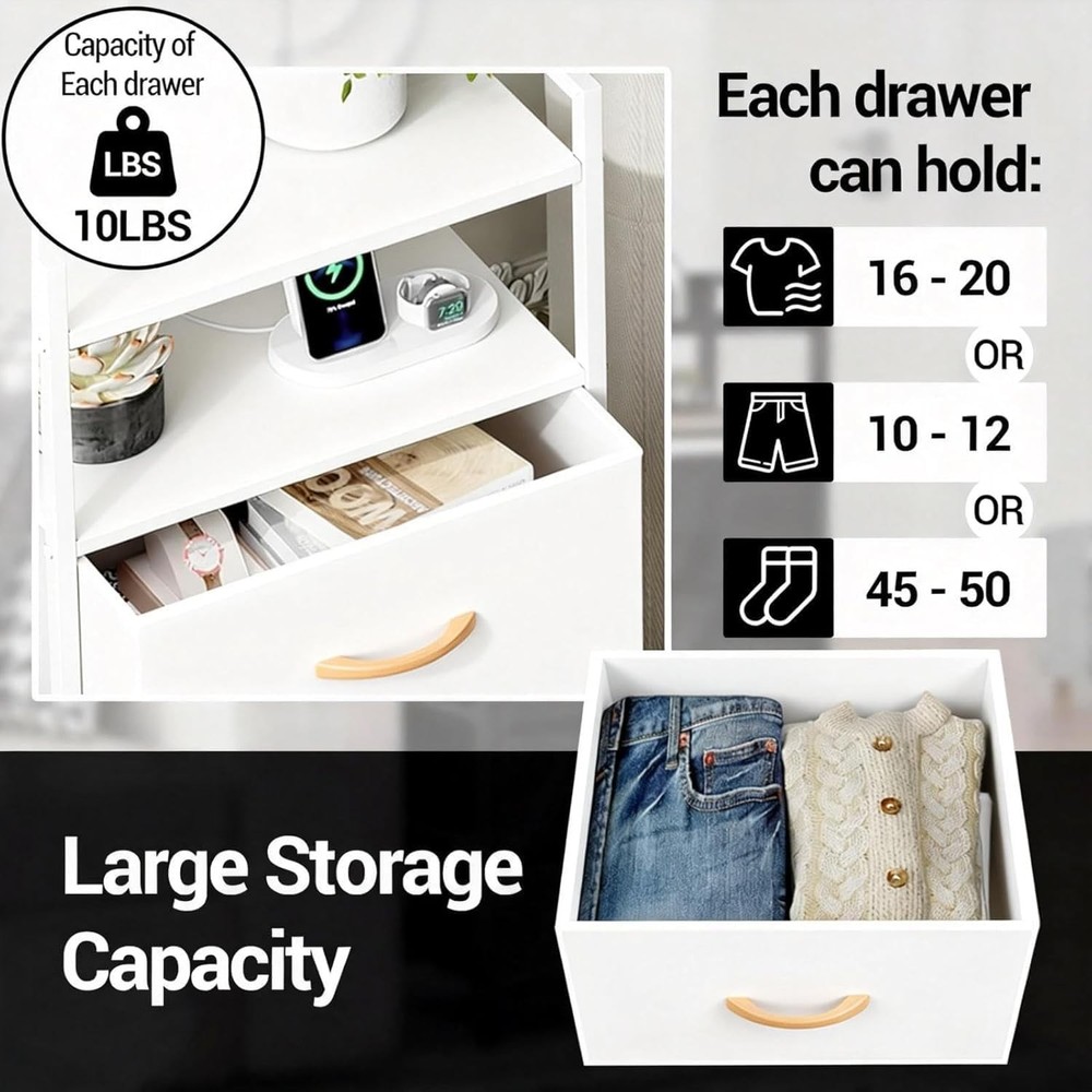 Chest of Drawer w/ 4 Drawers Storage Adjustable Feet Living Room Bedroom White About this item 【Spacious Storage】 Maximize your storage with this narrow chest of drawers, featuring 4 large drawers and a wide, water-resistant tabletop. Perfect for organizing clothes, accessories, and everyday essentials, this bedroom storage chest keeps your space tidy and stylish. 【Multifunctional Storage Cabinet】 Designed for versatility, this storage cabinet can be used as a bedside table with shelves, a dressing chest, or a compact steel frame storage unit for any room—bedroom, living room, study, or playroom. Store toys, socks, underwear, scarves, blankets, and more in easily accessible foldable drawers. 【Durable Steel Frame】 Constructed with a robust steel frame and durable wooden planks, this steel bedside table with drawers promises long-lasting performance. High-quality PVC fabric drawers are lightweight yet sturdy, while adjustable plastic feet provide stability, ensuring your storage cabinet stands firm on any surface. 【Adjustable Feet】 Blending seamlessly with any decor, this dressing chest with 4 drawers offers both style and function. The adjustable feet allow easy leveling on uneven floors and smooth positioning next to your bed, sofa, or entryway, making it an ideal addition for small spaces or narrow hallways. 【Quick & Easy Assembly】 All tools and detailed instructions are included, so you can assemble your narrow chest of drawers in minutes. This reliable storage solution is safe, stable, and perfect for anyone looking to enhance bedroom or living room organization with a modern, multifunctional touch. Payment Delivery details Terms of sales About us Contact us Payment We accept Payoneer only. All major credit cards are accepted through secure payment processor PayPal. Payment must be received within 7 business days of auction closing. If you have bought multiple items from me, you can send me one payment for all the items instead of paying for them individually. When you click the Pay Now button, eBay will automatically determine if there are other items you have won or purchased from me and will combine them for your review. NOTE: Import duties, taxes and chargers are not included in the item price or shipping charges. These charges are the buyer's responsibility. Please check with your country's customs office to determine what these additional costs will be prior to bidding buying. Delivery details 1. We will delivery out at the handing time when we receive the payment. 2. The delivery time is 3-5 business days to US by usually time.The parcel maybe delay 1-2day of the weekend.Due to the bad weather,Holidays,Hot Season ect.the parcel maybe delay,If you have any problems,mssage us,we will try our best to solve it. 3. We ship to your eBay address. Please make sure your eBay address is correct before you pay. 4. If you want to change the shipping address,message us before our send out. 5. We cannot deliver your order if your state is PR. Terms of sales 1. If you donot receive the items at the delivery time,the parcel has broken/missing,Please message us before you open case/return,we will try our best to solve it. 2. We offer a 30 day return policy from checkout winning date. 3. An RMA number is required for all returns. Message us for return instructions. Items Returned without a RMA number will not be processed. 4. Items defective upon receipt must be packaged in their retail packaging as if new and returned with a detailed description of the problem. 5. Return shipping fees are not refundable. We reserve the right to decline any returns if the above guidelines are not followed. About us If you are not satisfied with the item for any reason, please do not quick to leave negative/neutral feedback even open request and case without any communication with us. We devote ourselves making EVERY CUSTOMER in Satisfactory and resolve any problem. Thank you for your understanding and recognition,we are always leave positive feedback to all our customers. Contact us All replies will be sent to your email box, if you do not get response within 24 hours (Sat. & Sun. excluded) please check your eBay My Messages in case that our emails will be filtered automatically by your settings. Assembly Required Yes Brand Unbranded Color White Department Adults Item Height 32.9 IN Item Length 16.1 IN Item Width 11.4 IN Mounting Free Standing Number of Drawers 4 Pattern Solid Room Bedroom, Entryway, Home Office/Study, Living Room Style Contemporary/Modern Type Chest of Drawers