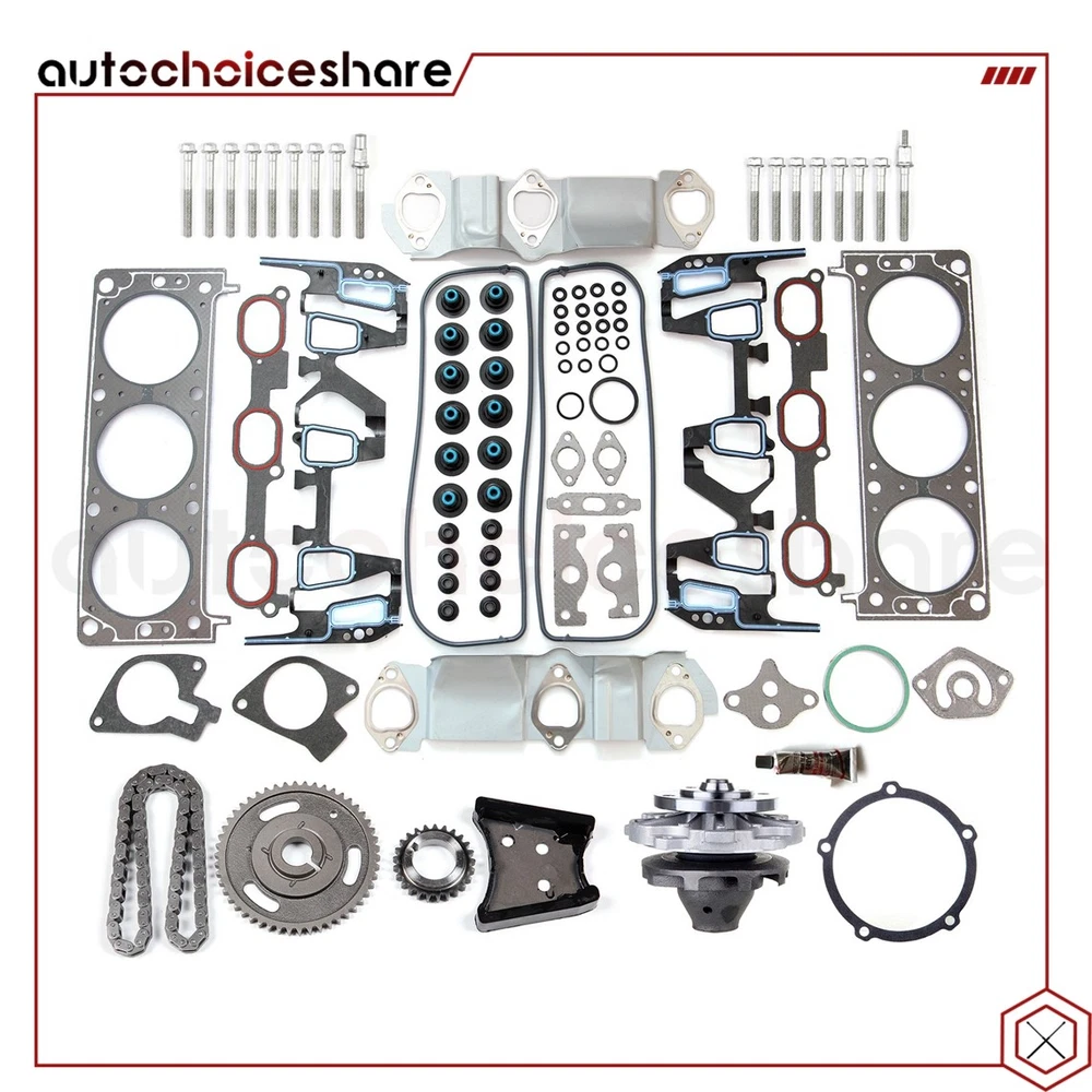 Compatibility should be checked and confirmed before placing order! Steps of confirming the compatibilities: Manage " My Garage ", and chose the right one when placing order; Or chose the " Year / Make / Model / Trim / Engine " of your vehicle on the compatible chart; Or Contact us if you have any question in confirming the compatibility, to make sure you will get the right and compatible item. Applications 2000-2003 For Buick Century Custom 3.1L 2000-2002 For Buick Century Limited 3.1L 2002-2005 For Buick Rendezvous CX 3.4L 2002-2005 For Buick Rendezvous CXL 3.4L 2000-2005 For Chevrolet Impala Base 3.4L 2000-2001 For Chevrolet Lumina Base 3.1L 2000-2000 For Chevrolet Venture Base 3.4L 2000-2005 For Chevrolet Venture LS 3.4L 2000-2005 For Chevrolet Venture LT 3.4L 2000-2005 For Chevrolet Venture Plus 3.4L 2000-2003 For Chevrolet Venture Value 3.4L 2000-2003 For Chevrolet Venture Warner 3.4L 1999-1999 For Oldsmobile Cutlass GL 3.1L 1999-1999 For Oldsmobile Cutlass GLS 3.1L 2000-2004 For Oldsmobile Silhouette GL 3.4L 2000-2004 For Oldsmobile Silhouette GLS 3.4L 2000-2004 For Oldsmobile Silhouette Premiere 3.4L 2001-2005 For Pontiac Aztek Base 3.4L 2001-2001 For Pontiac Aztek GT 3.4L 2004-2005 For Pontiac Aztek Rally 3.4L 2000-2003 For Pontiac Grand Prix SE 3.1L 2000-2005 For Pontiac Montana Base 3.4L 3.4L Package Included Graphite head gasket Intake manifold gasket Exhaust manifold gasket Valve cover gasket Viton valve stem seals Camshaft front O-rings Other Small Gaskets 1 Timing Chain 2 Sprockets 1 Guide Rail 1 Water Pump w/gasket (As pictures showed ? Specifications Direct replacement - this Kit are designed to match the original gaskets required to reseal and restore proper function on specified vehicles. Restores functionality - this Kit are made to fit and fully restore part functionality after the original gasket fails. Durable construction - this Kit are made from quality materials to ensure reliable performance and long service life Trustworthy quality - These Kit are designed for the professional installer. It does not come with any installation instructions. If you do not have a service manual, please consult a professional mechanic prior to installing this kit. You will get what you see in the picture showed. About US: We are committed to making the best auto-parts products and providing you with better services. So if you have any quesiton or problem, please fell free to contact us about that. Payment: All of these methods which are acceptalbe by eBay. Shipping: All item will be packed with well condition in box or envelope, we make sure the item is in good protection, also please check all the item when you get the package. Product will be shipped within 2 business days after full payment is received and verified. All domestic orders will be shipped via USPS, UPS or FedEx from our US warehouse and usually arrives to your door in about 2-7 business days. Returns & Refund: 30-day free return will be provided. -Please note that the situations below will not be incounted: -Ordered by mistake. -Don't like it. -Duplicated orders. -Damaged product during installation. Contact Us: Any quesiton or problem, do contact us please. We are always online to answer. End Save for Web Slices