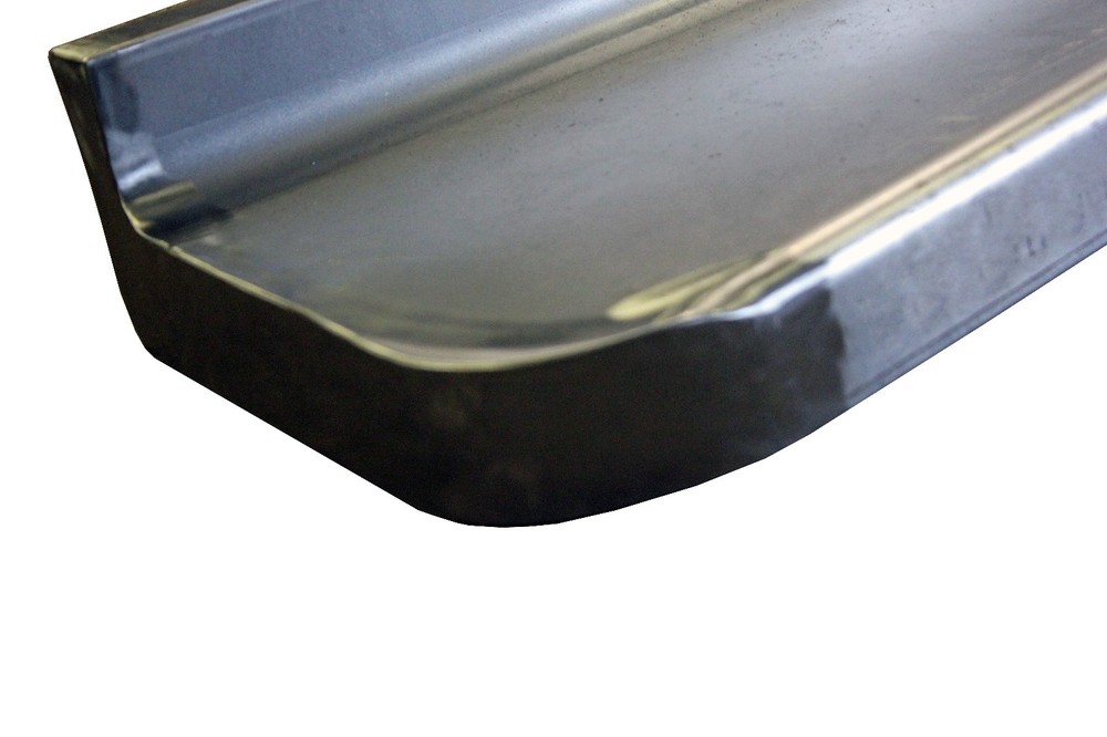 Custom made to order premium quality 1018, 16 gauge cold rolled steel set of steel running boards with adapters to fit to your original braces. Heavy gauge steel will not give way like fiberglass boards. Made from original board patterns but smoothed for hot rod look. Due to high cost of item it is MADE TO ORDER so please note handling time. Fits: 1947,1948,1949,1950,1951,1952,1953,1954 1/2 and 3/4 Ton Long Bed. Requires 1/2" spacers for 1949. Measures Overall length 74.5", front width is 9", and rear width is 7"