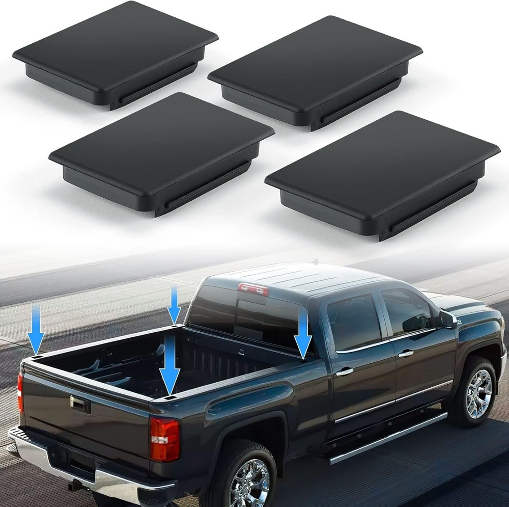 Truck Bed Rail Stake Pocket Covers for Chevy Silverado/GMC Sierra - 4 Pack Compatible with: The Stake Pocket Cover is compatible with 1999-2014 Chevy Silverado and 2010-2014 GMC Sierra. Please measure the size of stake pocket match the product and make sure it is compatible with your truck's hole size before purchasing Upper Size: 2.87 x 1.97 x 0.43 in, Bottom Cover: 2.56 x 1.77 x 2.01 inches Protect your stake hole: Snap it in your bed rail, keeping debris, leaves, sand, dust out Material: Made of premium rubber material for durability Package: The package includes 4 pieces of stake pocket covers Shipping We offer FREE shipping on all orders! We ship within Three business days of payment, usually sooner. We use a selection of shipping services such as UPS, FedEx, USPS etc. We only ship to the lower 48 states, no APO/FPO addresses or PO Boxes allowed. Local pickups and combined shipping options are not provided at this time. Return You can return a product for up to 30 days from the date you purchased it. Any product you return must be in the same condition you received it and in the original packaging. Please keep the receipt. Payment We accept payment by any of the following methods: PayPal Please pay as soon as possible after winning an auction, as that will allow us to post your item to you sooner! Feedback Customer satisfaction is very important to us. If you have any problem with your order, please contact us and we will do our best to make you satisfied. Contact Us If you have any queries, please contact us via ebay. We usually respond within 24 hours on weekdays. Please visit our eBay store to check out other items for sale! Thank you for shopping at our store.