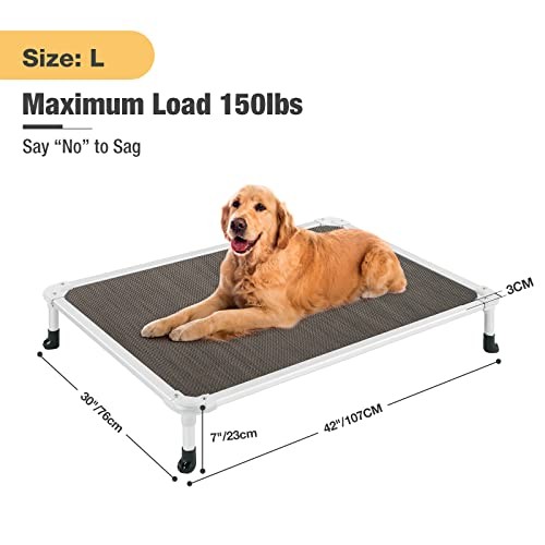 30 Days Return Policy Fast Delivery Trusted seller Chew Proof Elevated Dog Bed - Cooling Raised Pet Cot - Silver Aluminum Frame and Durable Textilene Mesh Fabric, Unique Designed No-Slip Feet for Indoor or Outdoor Use, Brown, Large, CWC2003 Product Description Chew Proof Elevated Dog Bed Cot. Composed of Rustless Aluminum Frame and Better Textilene Mesh Fabric. Also, all the edges of the Dog Bed Mat are wrapped directly inside in Frame, Indestructible & Now to chew. Durable Design for Better Life. Size: 42"L x 30"W x 7"H (107x76x18 cm). Upgraded material and structure offer strong stability, Raised dog bed can hold a maximum weight of 150 pounds (68kg), say goodbye to the fear of a sudden bed collapse. Floor No More (7" Off the Ground). The bed mat crafted of Textilene mesh fabric, features sturdy and breathability. Sleeping with an elevated dog bed is more comfortable, cleaner, dryer, and healthier compared to the ground. Easy to Clean. For the pet hair, dirt, grime (or other stains brought by your dog from outside lawn), simply hose off with water and allow to dry. Besides, you can also wipe them clean with a wet towel Easy to Assemble. Screws and hex tool are included. And more, some accessories have been assembled and can be installed directly. Portable and Perfect for indoor, outdoor, picnic, camping, training… Quality sleep on the go! Shipping Returns Payment Shipping Shipping is FREE to all addresses other than APO/PO boxes in the lower 48 states. All our stock ships from US-based warehouses. Shipped via USPS or UPS (depending on location and package weight) Unless stated otherwise, all orders will ship within 24-72 hours of your payment being processed. Check our feedback to see the great reviews of FAST shipping we offer. Returns As our valued customer, we will do our best to make sure the product you receive arrives to you on time and as expected. If you are not satisfied with your purchase, please contact us within 30 days of receiving your order to process a return. Payment We currently accept payment via eBay managed payments only. Once payment is cleared, we will dispatch your shipment within 1-3 business days. Please refer to the "Shipping" tab for more information regarding shipping speed to your destination.