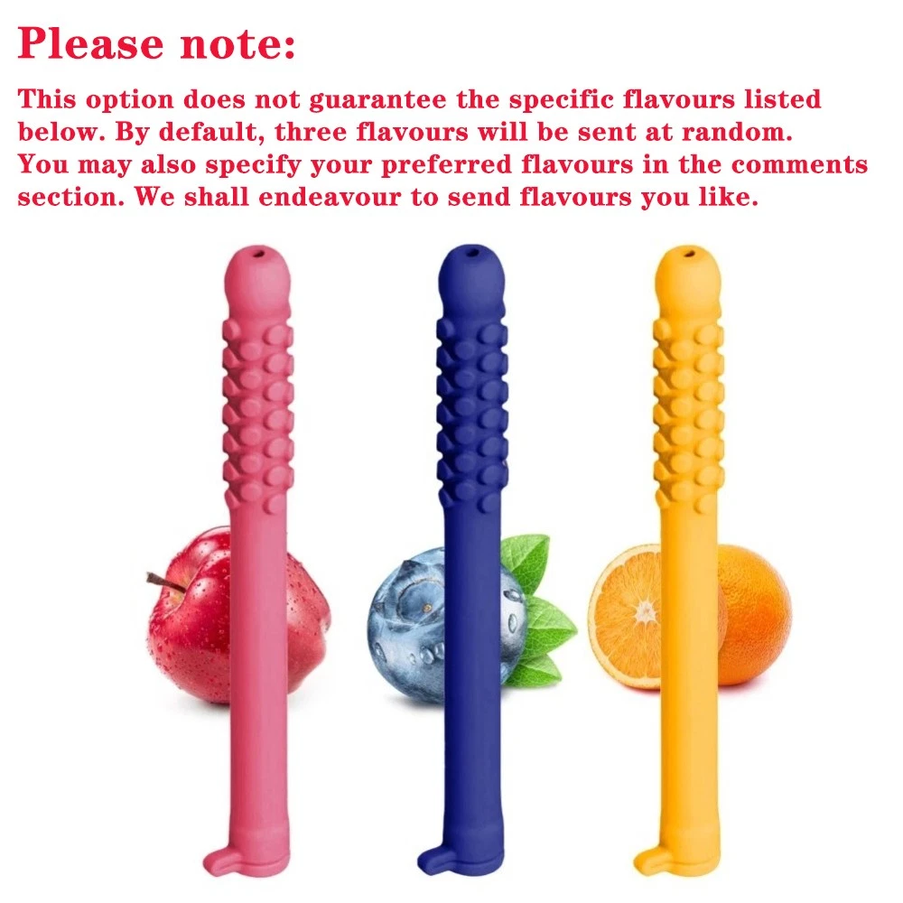 Chewable Essential Oil Breath Stick Chewable Breather Stick w/ Essential Oil Features: Eco-Friendly & Reusable: Crafted from food-grade silicone, this chewable breathers is soft, flexible, and gentle on teeth. Simply replace the refill core after each use to instantly renew your breath stick. Featuring textured particles for enhanced sensory stimulation, this flexible chew stick helps manage anxiety and oral fixation, Breaking Oral Habits: The newly designed chewable silicone stick serves as the ideal alternative for those quitting smoking, offering a satisfying mouth-hand interaction ritual and fresh breath sensation. Free from harmful ingredients, it prioritizes health concerns. Suitable for All Occasions: Highly recommended for those with oral habits like nail-biting or pen-chewing! Keeping your mouth occupied helps distract your mind from tension. Use it during stressful situations for instant relief—smoke-free and suitable for any occasion. Chewable Breather for Quitting Smoking: These innovative chewable breath sticks are designed to help you quit smoking by providing a satisfying oral substitute, reducing cravings and improving breath freshness with essential oils. Fresh Fruit-Flavored Chew Stick: Enjoy a burst of natural fruit flavor while relieving stress and anxiety, perfect for office workers and commuters seeking a discreet, pocket-sized solution to nervous habits. Pocket-Sized Essential Oil Breather: Compact and convenient, this chewable essential oil breath stick freshens breath on the go while promoting relaxation, making it a must-have for busy professionals and travelers. Ideal for Improving Nervous Habits: Designed to curb smoking and anxiety, these chewable breath sticks offer a healthy alternative to nervous chewing, perfect for commuters, office workers, and stress relief. Conveniently portable: Compact and lightweight, easily fits in your pocket. Carry it anywhere for on-the-go use! Whether at work, driving, or socializing, it provides instant satisfaction whenever needed. Specifications: Enduring : This chewable essential oil breath stick is safe and enduring , widely applicable to people . Product Name: Chewable Essential Oil Breath Stick Material: Silicone Flavor : Blueberry, Apple, Cola, Orange, Coffee, Lemon, Soda, Watermelon, Mint, Strawberry Size: 14*2cm Package Include: 1//2/3/4PCS Chewable Essential Oil Breath Stick Note: Due to the screen lighting effect, the actual color of the product may be slightly different. Due to manual measurement, please allow size error.