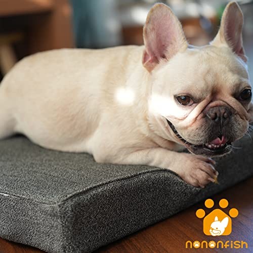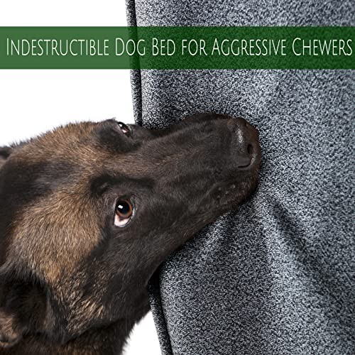 Chew-proof indestructible dog bed for small breeds, 28x20x3 inches, durable hemp fabric in gray