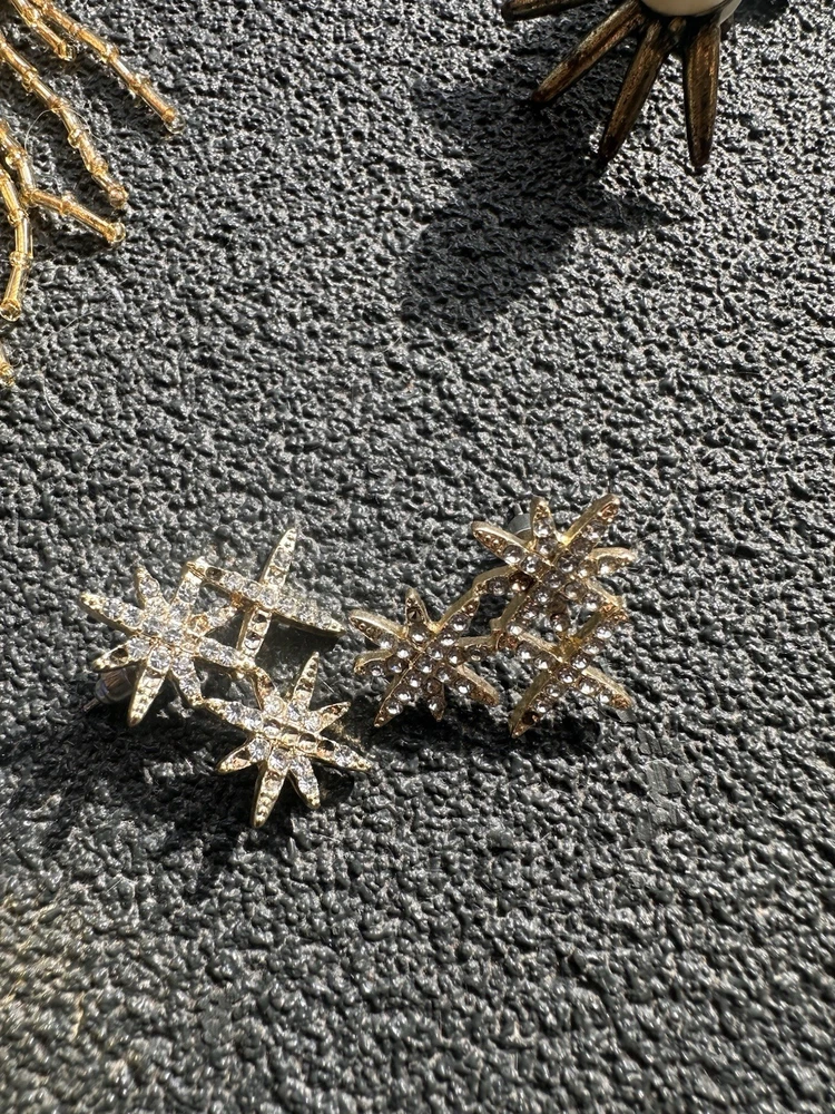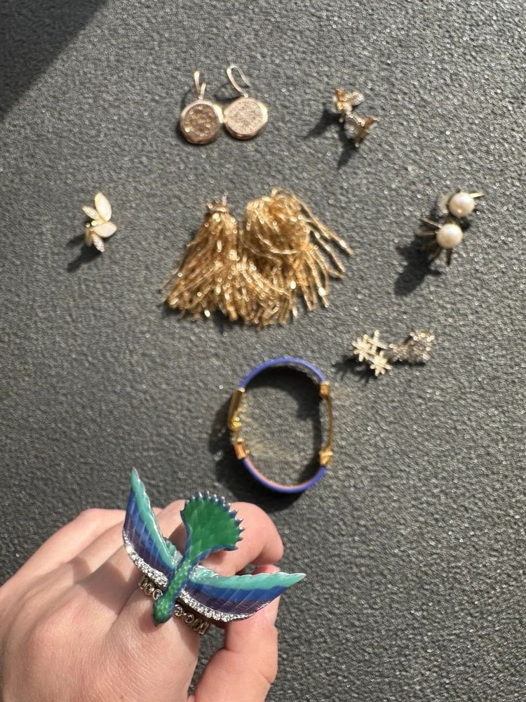The jewelry lot includes a set of 6 earrings, a Paradise ring, and a Hermes-style bracelet, all of which offer a chic and unique style. The pieces are made of mixed materials such as glass, leather, rhinestones, and various types of metals, providing a mix of colors and textures. This fashion jewelry collection is perfect for those looking to add a touch of flair to their outfit, with a variety of accessories to choose from to suit different tastes and preferences.