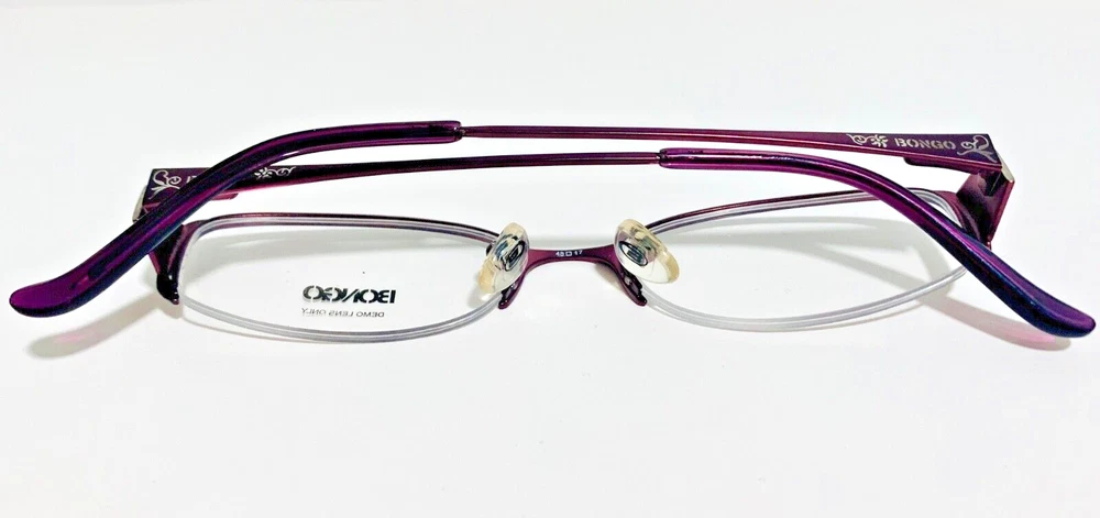 RACCOON STASH WELCOMES YOU! 100% Money Back Guarantee! NEW AUTHENTIC BONGO Chica Purple / Dark Burgundy Semi-Rimless Metal RX EYEGLASSES The frame is brand new, never used or worn! Note: Demo lenses may have some minor scratches from handling in store, but they are meant to be removed when installing your prescription lenses! COMES WITH GENERIC SLEEVE CASE and GENERIC CLEANING CLOTH! Model: Bongo Chica Purple Color: Purple / Dark Burgundy Lens Color: Clear RX Demo Size: 48-17-135 MM All items are packaged carefully for shipping to prevent any damage during transportation. International Buyers - Please Note: Import duties, taxes, and charges are not included in the item price or shipping cost. These charges are the buyer's responsibility. Please check with your country's customs office to determine what these additional costs will be prior to bidding or buying. If you have any questions please feel free to ask. Thank you for choosing us for your optical needs! Item ID: RV 009_123