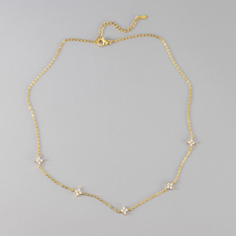 Adorable choker necklace for ladies! Great gift for self-rewarding or for your loved one, family, or friends. ...Shimmering and stylish, this chain necklace is a versatile addition to her jewelry box. Wear this style as Layered chokers or just as a delicate Necklace. ... This choker looks great on its own as well as layered with different chains. Add some charms, and pendants to it for more shine! ...Metal: Sterling Silver plated ...Stone: CZ, ...Shape: Clover ...Chain: 18" Adjustable (15" + 2"), Spring Clasp Clasp ... Color: Silver or Gold ... Shipping Item will be shipped within 1 business day after payment clears. Domestic items will be shipped via USPS First-Class Mail without the Tracking Number. Tracking & delivery confirmation are available ONLY upon request, additional shipping charges may apply. International items will be shipped via USPS International First-Class Mail without the Tracking Number. ...Return If you have any questions or there's any issue with the item you received, feel free to contact me Refund your money back or Resend a new one -- Your choice.