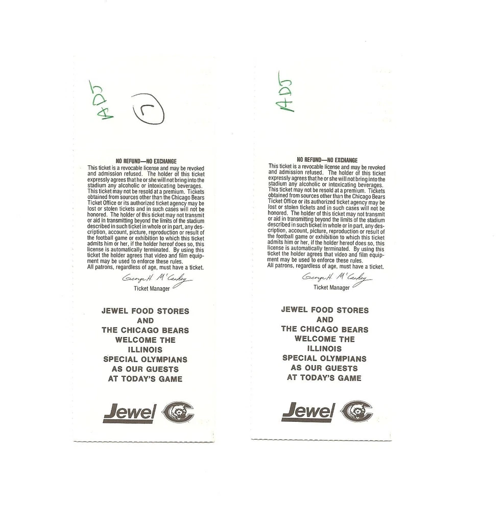 Chicago Bears vs New York Jets Unused Football Tickets From September 23, 1991 Here are 2 unused Chicago Bears vs New York Jets Football Tickets from September 23, 1991. The game took place at Soldier Field in Chicago, Illinois. The tickets are in good condition and would make an excellent addition to your collection. Payment Payment is due within 24 hours of sale. Shipping Your item will be shipped within 24 hours of receipt of payment via US Mail. Terms and Conditions All Sales are final. No Refunds