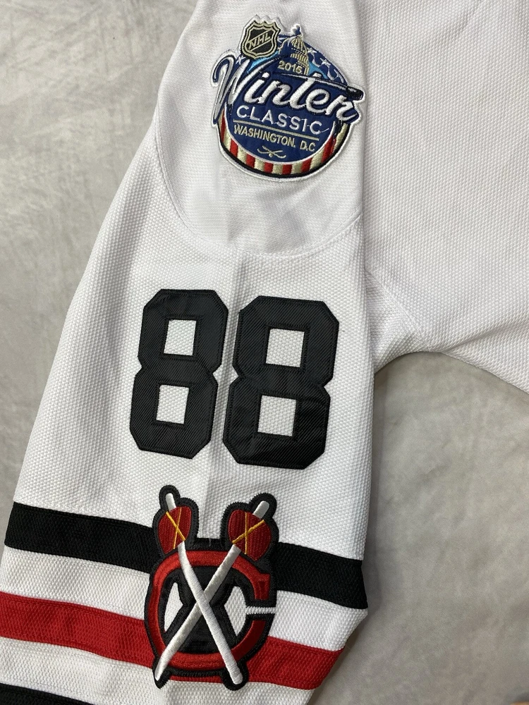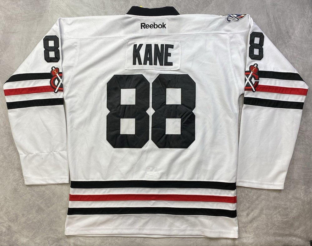 Player: Patrick Kane Product: Jersey Size: 52 Color: White Sport: Hockey Gender: Men Team: Chicago Blackhawks Pre & Post Season: Regular Season League: National Hockey League (NHL) Brand: Reebok