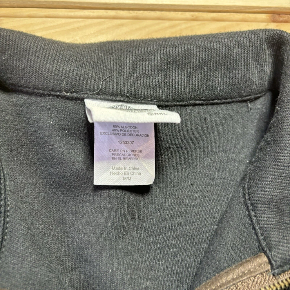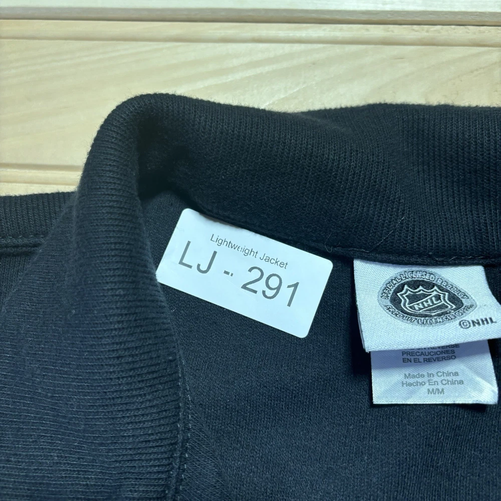 Size Type: Regular Neckline: High Neck Closure: Zip Performance/Activity: Hockey Type: Polo Pattern: Striped Size: M Season: Fall, Spring, Winter Color: Black Brand: NHL Theme: Outdoor, Sports Fit: Regular Vintage: No Garment Care: Machine Washable Sleeve Length: Long Sleeve MPN: HOM5G6 Accents: Logo, Zipper Department: Men Style: Pullover Fabric Type: Jersey Material: Polyester Features: 1/2 Zip, 1/4 Zip, Breathable, Stretch