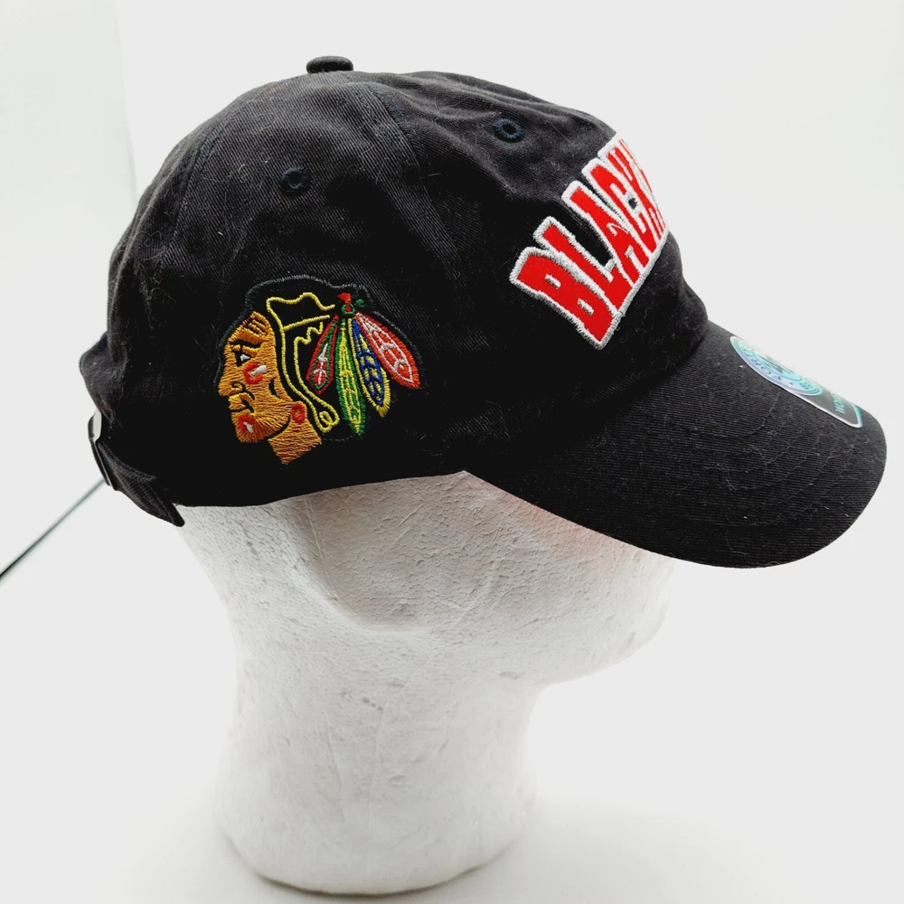 Size:AdjustableProduct:Cap, HatTeam:Chicago BlackhawksLeague:National Hockey League (NHL)Capacity:8 ozPlayer:N/AGender:Unisex AdultBrand:unbrandedModified Item:NoColor:BlackPre & Post Season:Regular SeasonSport:Hockey