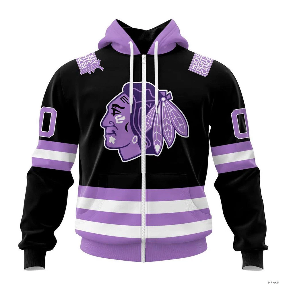 Chicago Blackhawks Personalized Home In Lavender Hockey Fight Cancer Hoodie