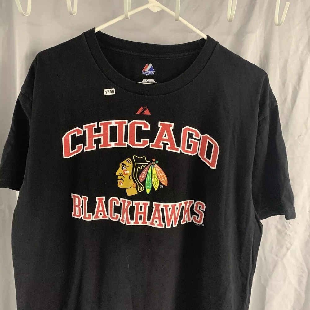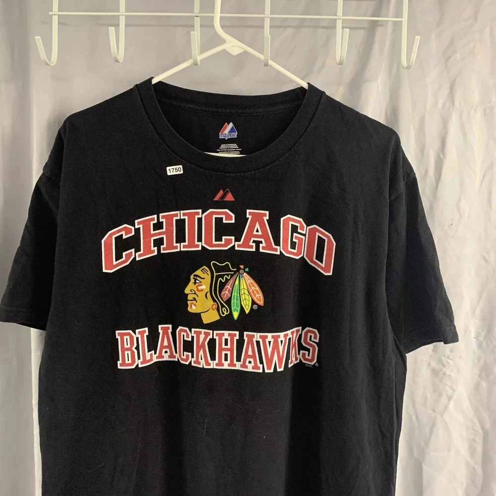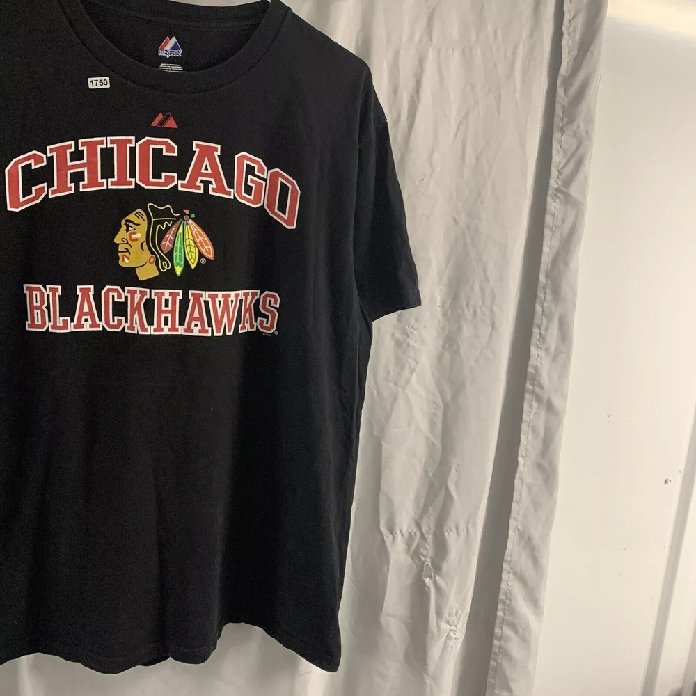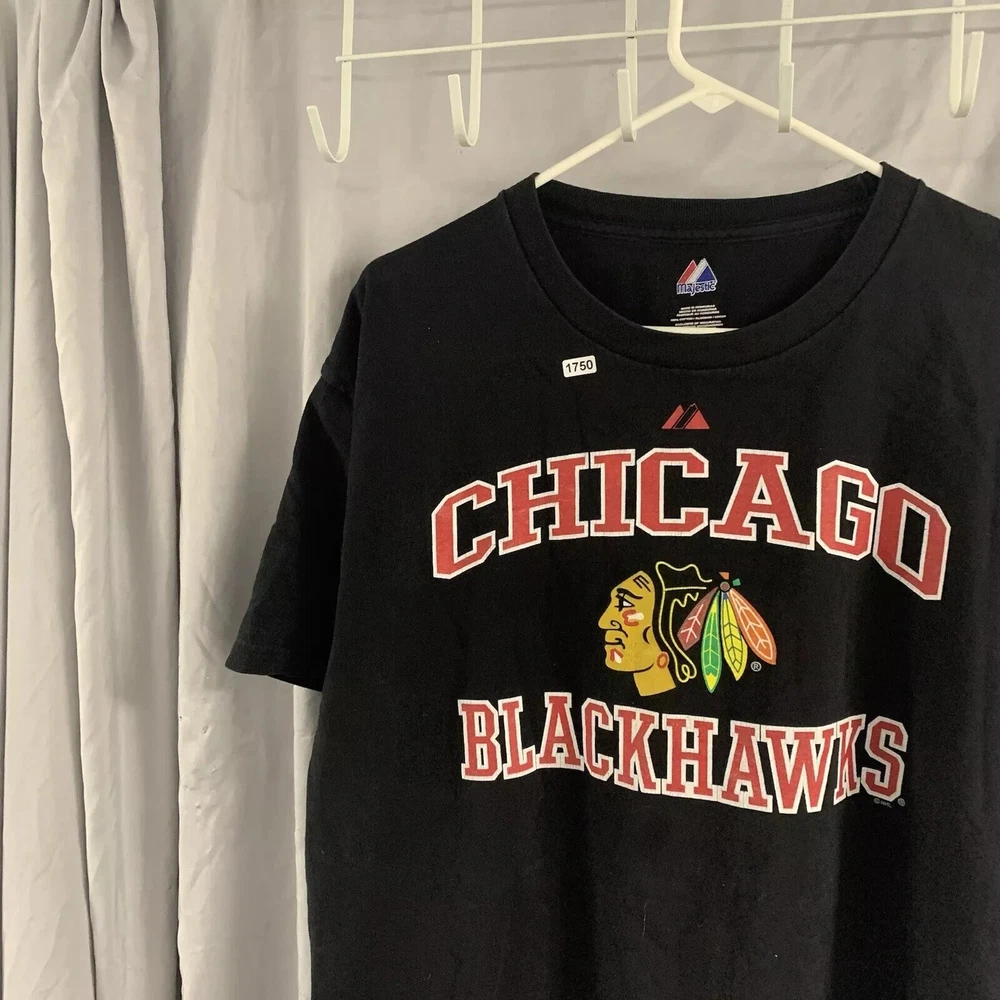 Show off your love for the Chicago Blackhawks with this stylish and comfortable shirt from Majestic. Made from a cotton blend knit fabric, this short sleeve shirt features a crew neck and a regular fit. The black shirt is adorned with an embroidered team logo and button accents, giving it a classic and timeless look. This limited edition shirt is perfect for any fan of the Chicago Blackhawks, with its vintage design and preshrunk, lightweight, and breathable features. It's a great addition to any wardrobe and can be worn in any season. Whether you're going to a game or just showing off your team spirit, this shirt is sure to turn heads.