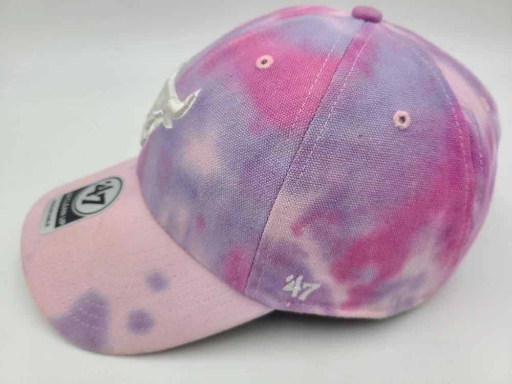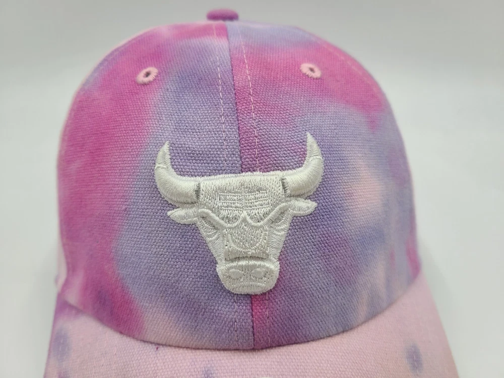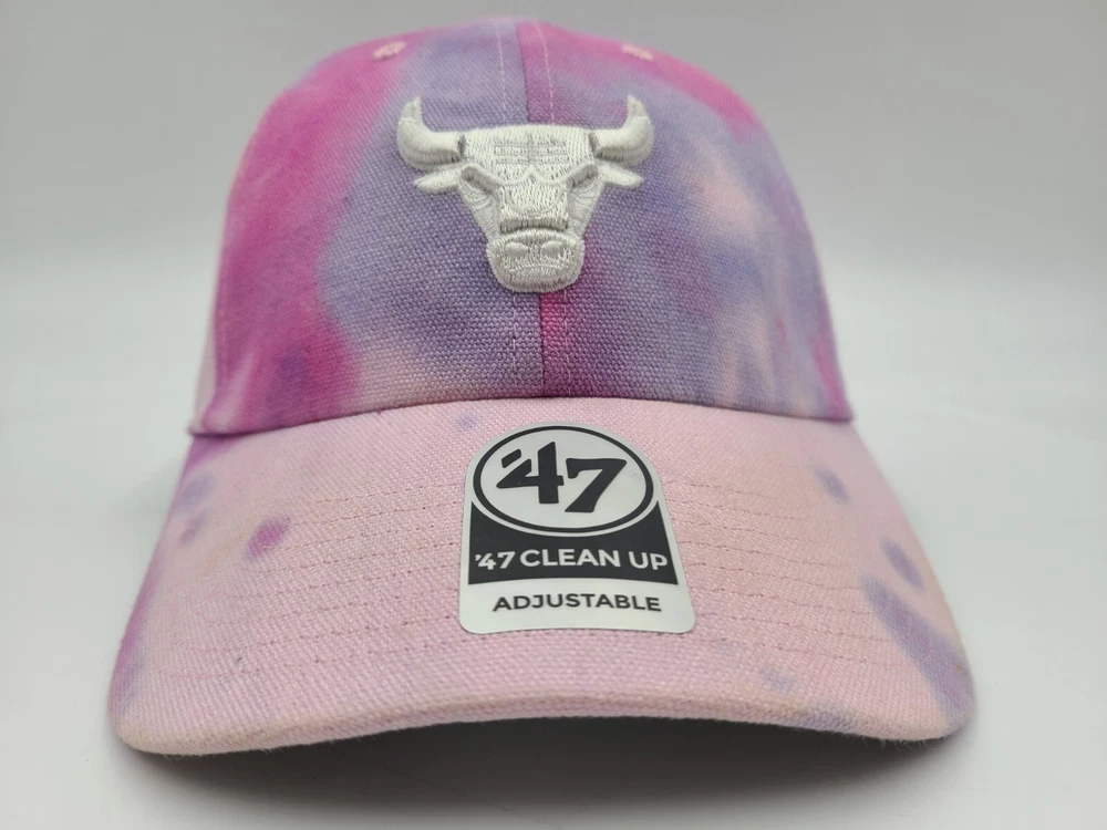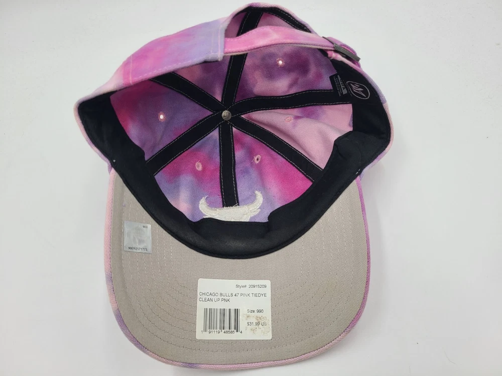 Has some stains/discoloration on the brim, sides, and underneath the brim as seen in photos. Chicago Bulls 47 Brand Clean Up Tie Dye Strapback Hat Cap Men Women Pink Purple. EACH ADDITIONAL HAT PURCHASED IS ONLY $1 ADDED SHIPPING!