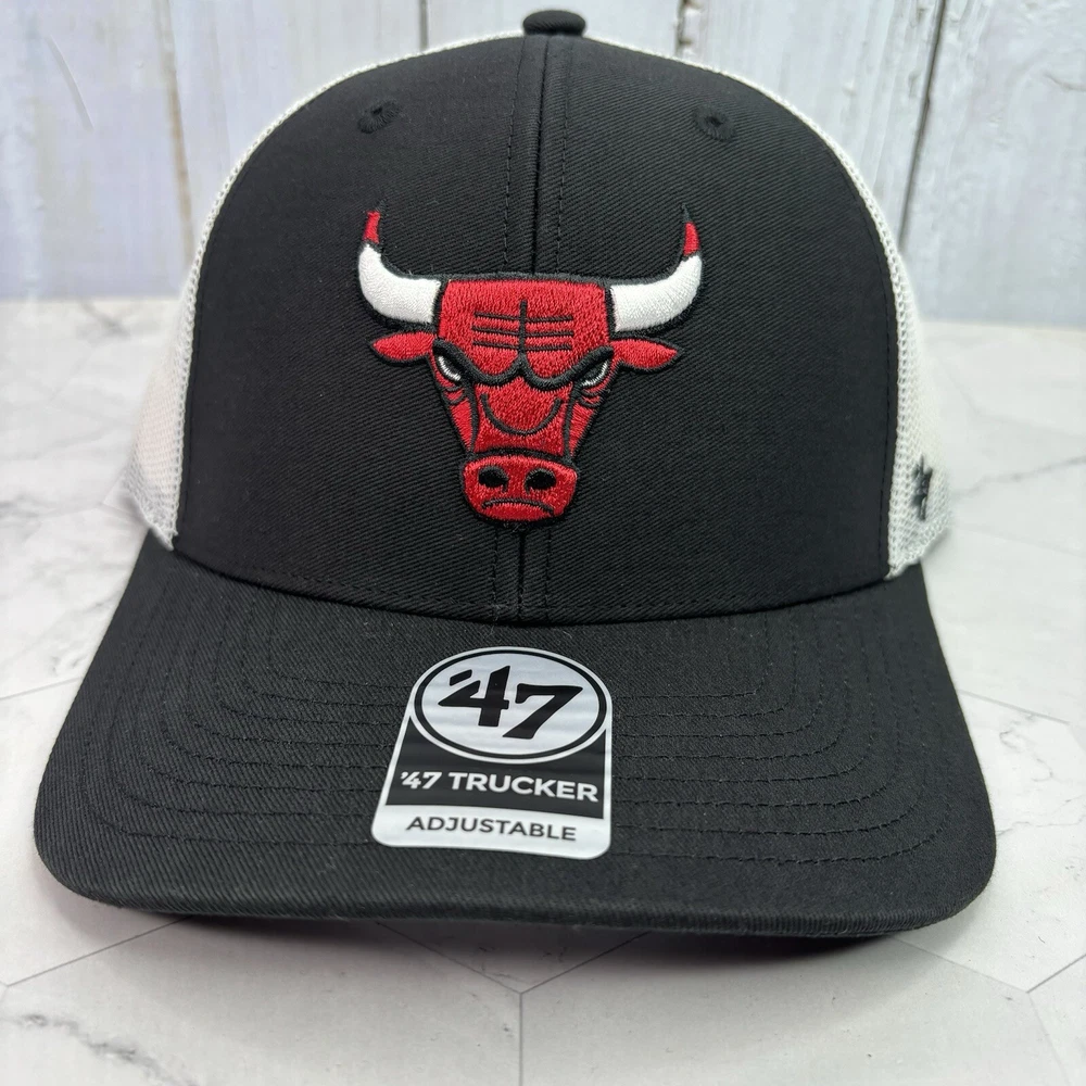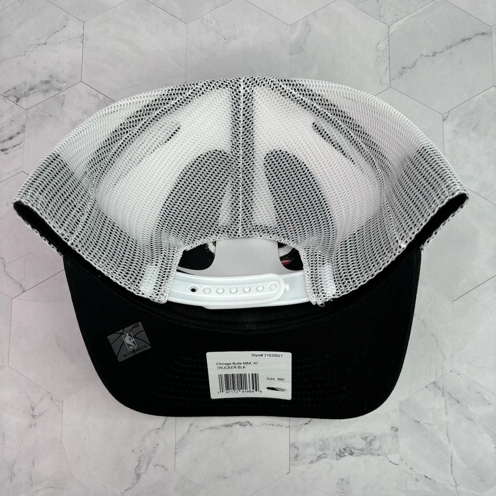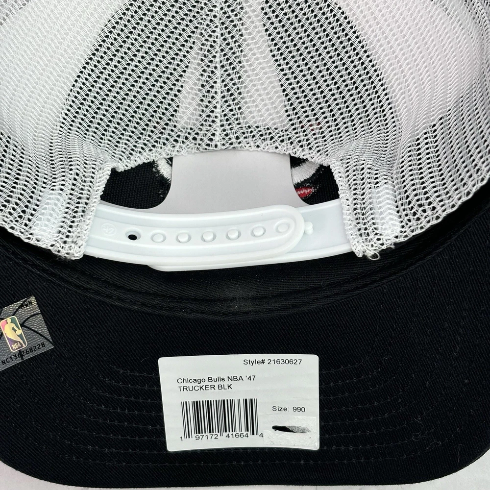 Chicago Bulls ‘47 Brand Trucker Black Red Adjustable Snapback Hat OSFA Cap NBA