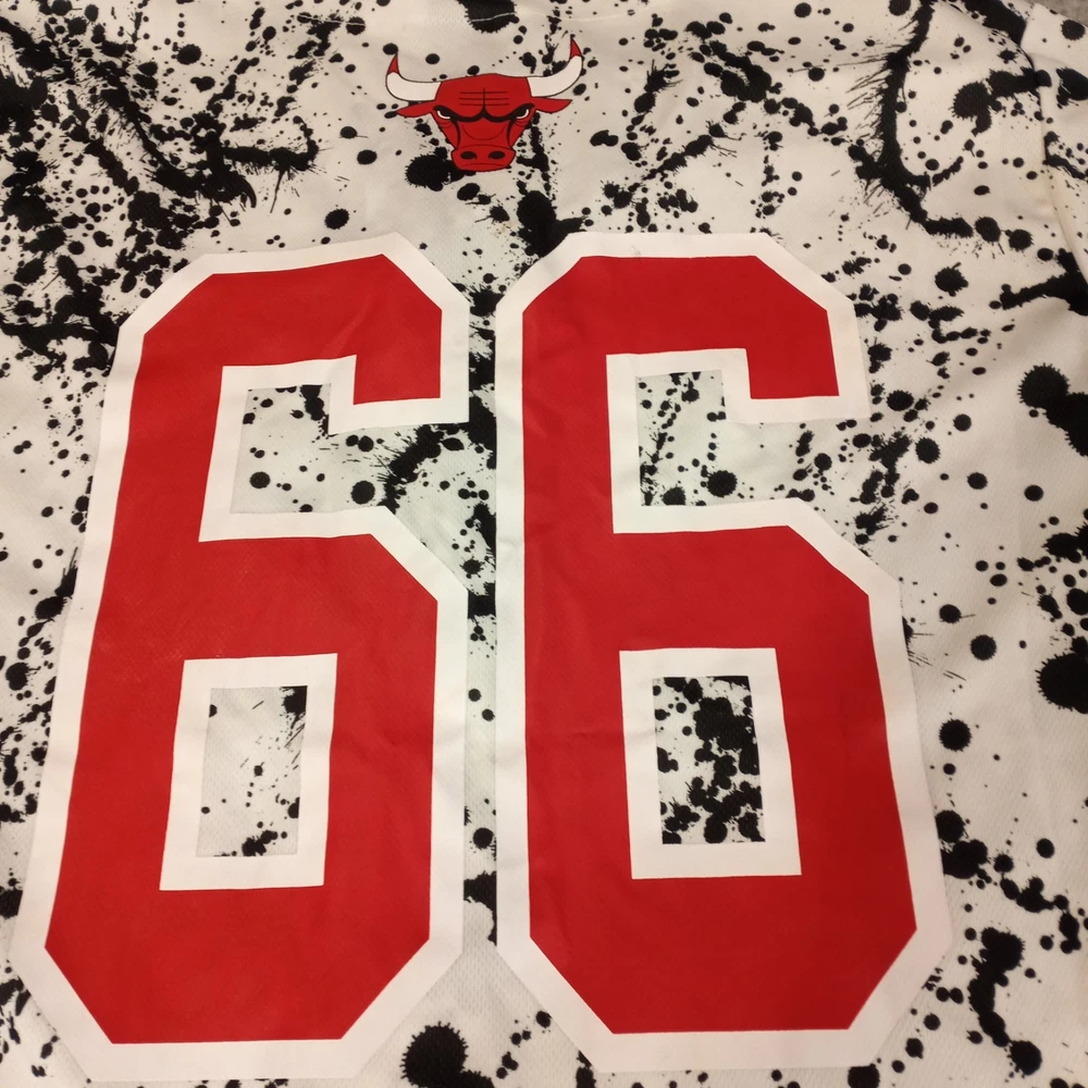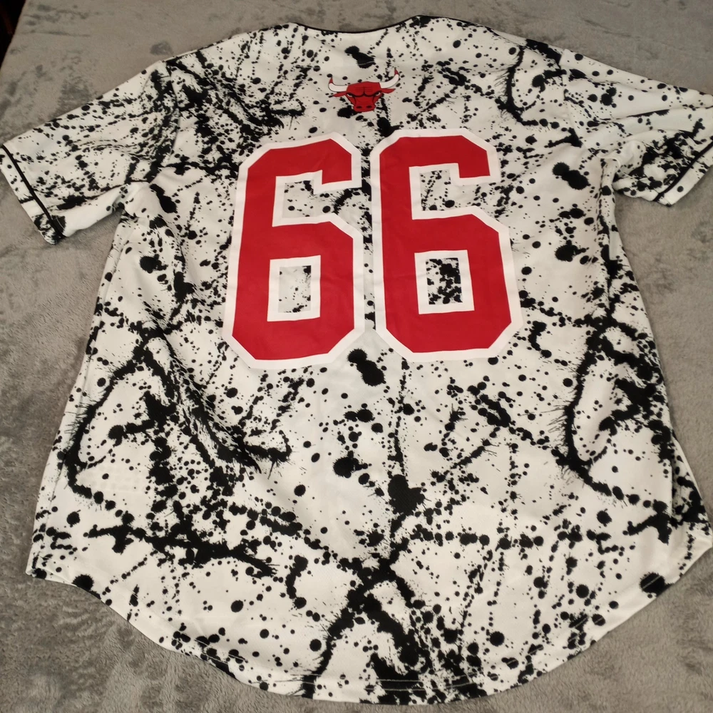Chicago Bulls #66 NBA Baseball Style Jersey Paint Splatter Size Large