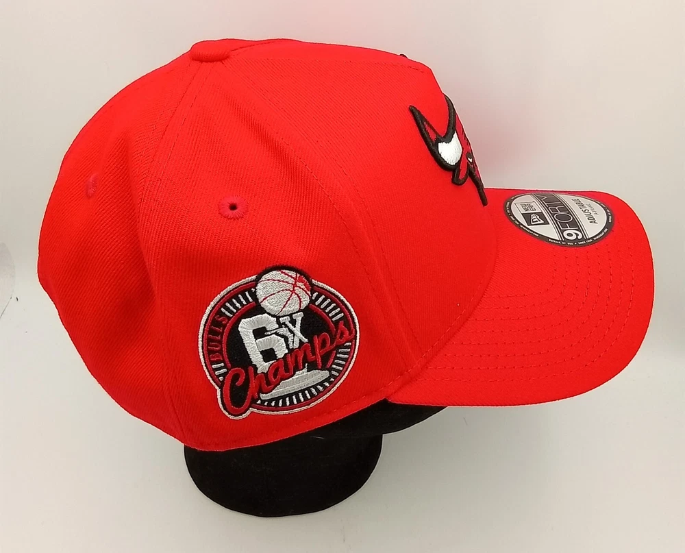 NWT. Show off your team spirit with the Chicago Bulls 6X Champs New Era 9Forty Cap. This stylish snapback is designed to fit most with its adjustable strap, ensuring comfort for all-day wear. The vibrant red hue is eye-catching and celebrates the Bulls' vibrant heritage, while the embroidered logos add a touch of class. The front features the iconic Bulls logo, and the side boasts the proud inscription "6X Champs," commemorating the team's impressive achievements. Whether you're courtside or just out and about, this cap is the perfect accessory for any fan looking to honor the legacy of the Chicago Bulls and the NBA. HAT BOX 7 - 1909