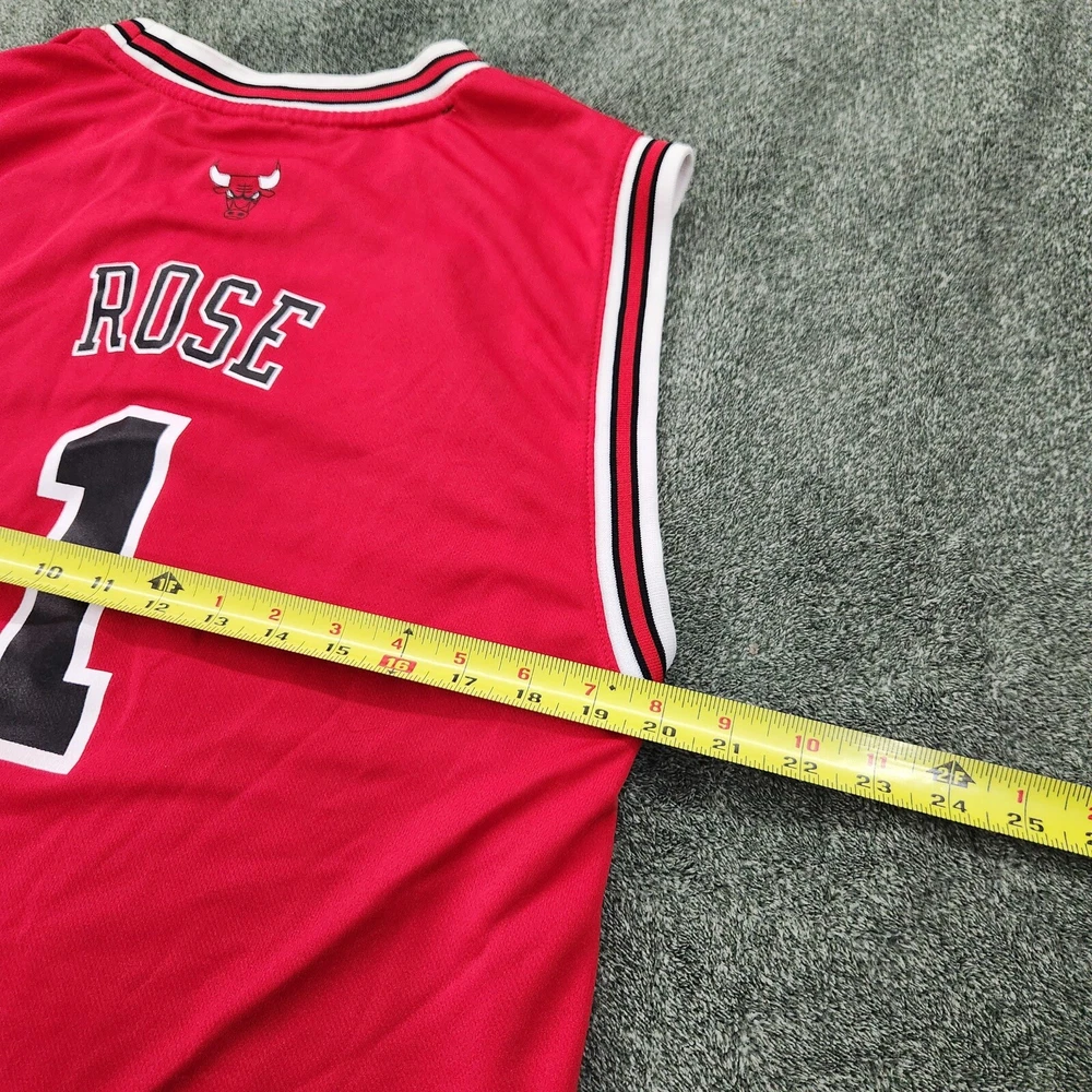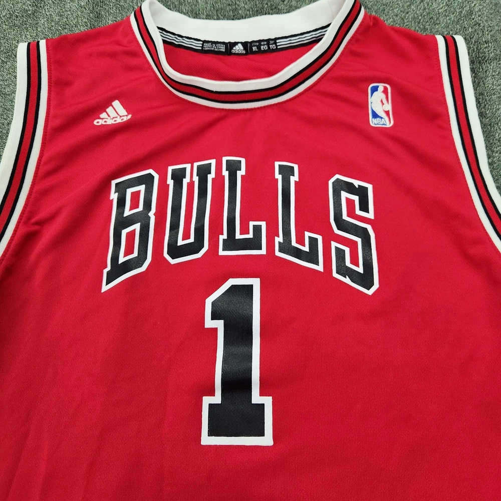 Chicago Bulls Basketball Jersey NBA Adidas Minor stitching Error Adorn yourself in the iconic colors of the Chicago Bulls with this striking Derrick Rose Adidas NBA basketball jersey. A size XL, it's designed to fit comfortably and look great whether you're at the game or out on the town. The jersey is officially licensed by the NBA, ensuring authenticity and quality, and it's crafted to capture the spirit of one of basketball's most electrifying players. The jersey's red hue is vivid, with the Bulls' logo and Rose's name prominently displayed, making it a standout piece of fan apparel. It's made for unisex adult fans and has been manufactured with care in China. Perfect for the regular season and beyond, this jersey is a must-have for any serious basketball enthusiast or collector of sports memorabilia.
