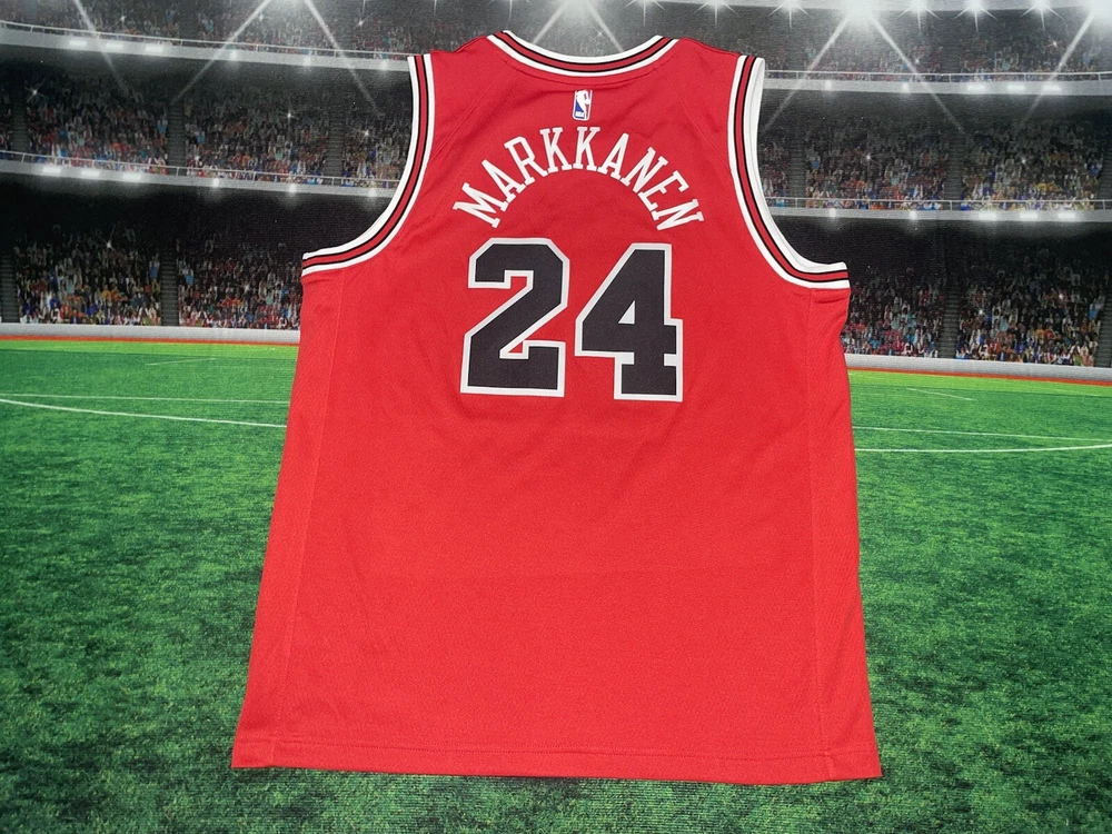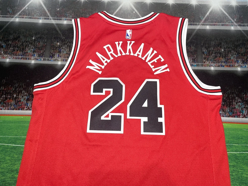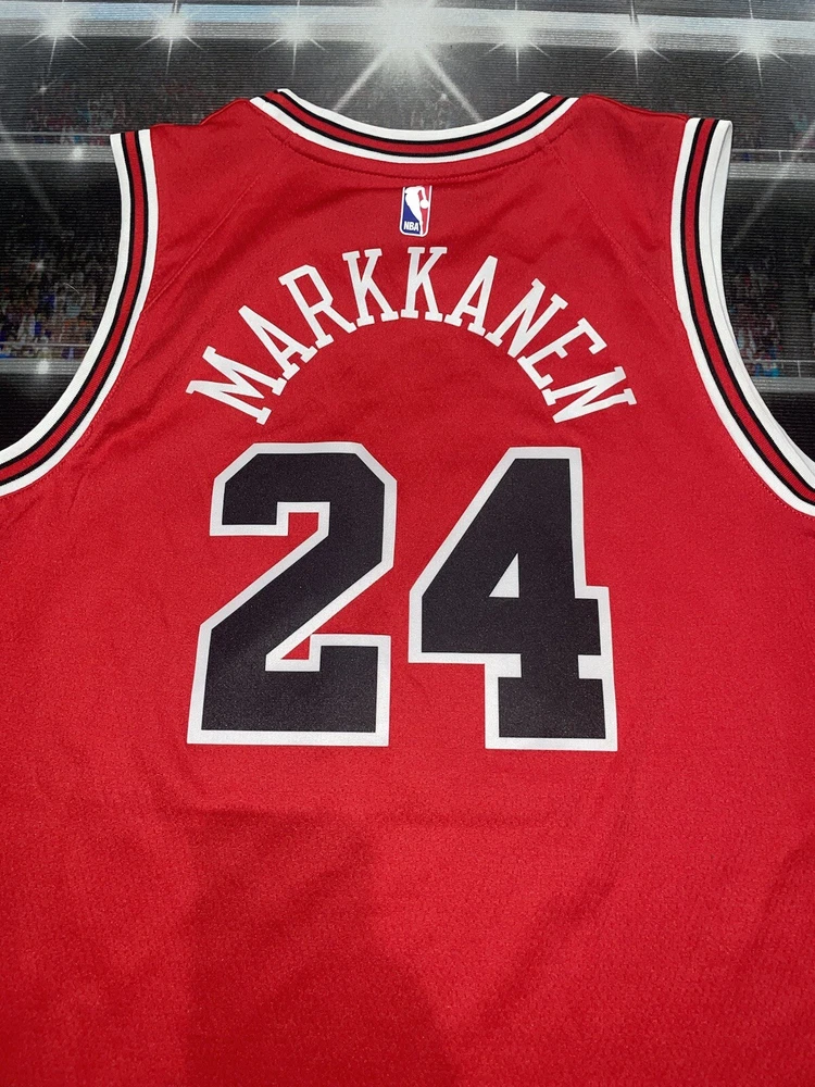 Item is in nice condition We try our best to fit the best description possible , condition and pictures please fill free for any questions or concerns thanks Immerse yourself in the spirit of the game with this Chicago Bulls Lauri Markkanen #24 Adidas Jersey. A true testament to the excitement of basketball, this jersey is designed for the ultimate fan, capturing the energy of the NBA's regular season. The vibrant red color echoes the Bulls' iconic style, while the Nike brand ensures quality and comfort for all-day wear. Tailored for unisex children in size XL (18/20), this piece is not just a garment but a badge of honor in the world of sports memorabilia. It represents a connection to the Chicago Bulls legacy and a celebration of one of the team's rising stars. Whether for a game day or as a collectible, this jersey is a must-have for basketball enthusiasts and collectors alike.