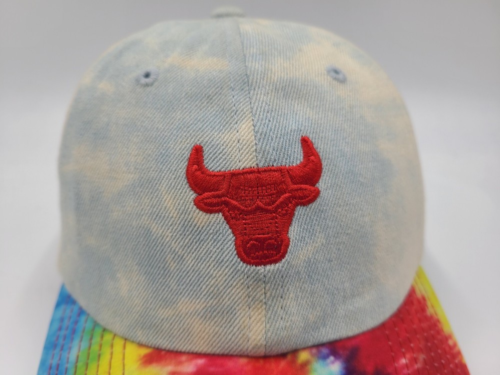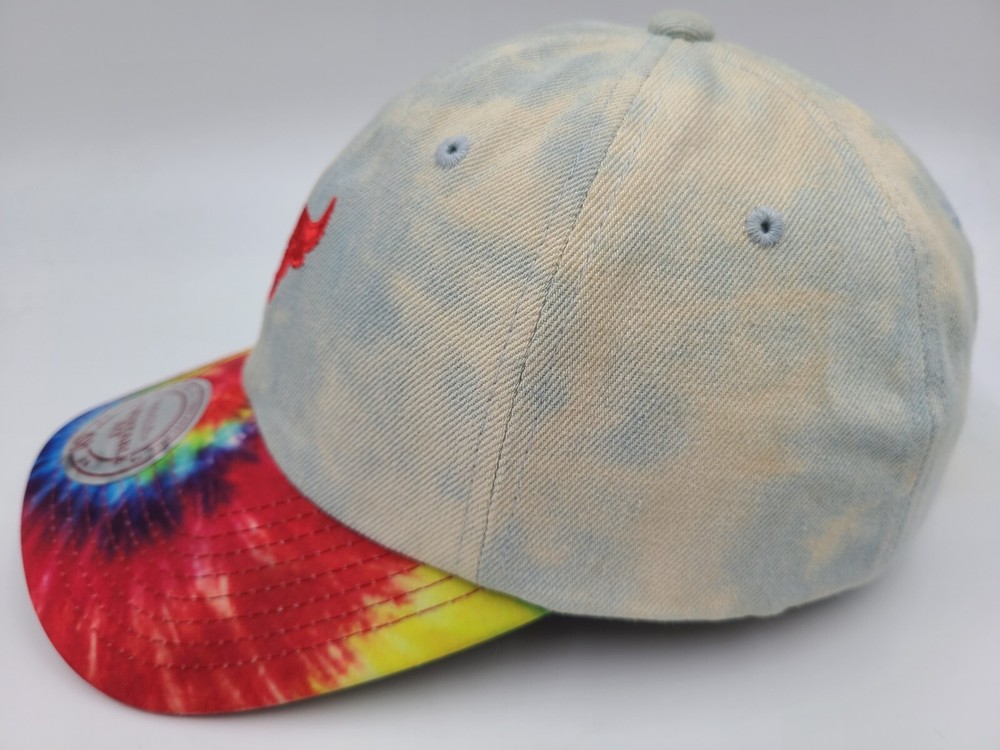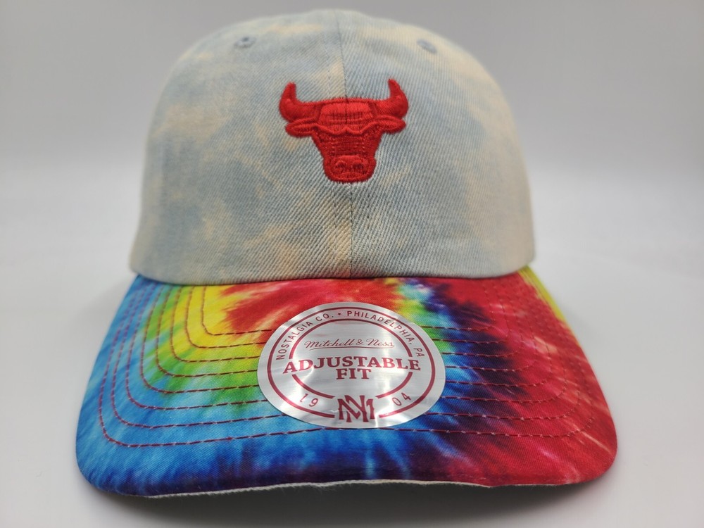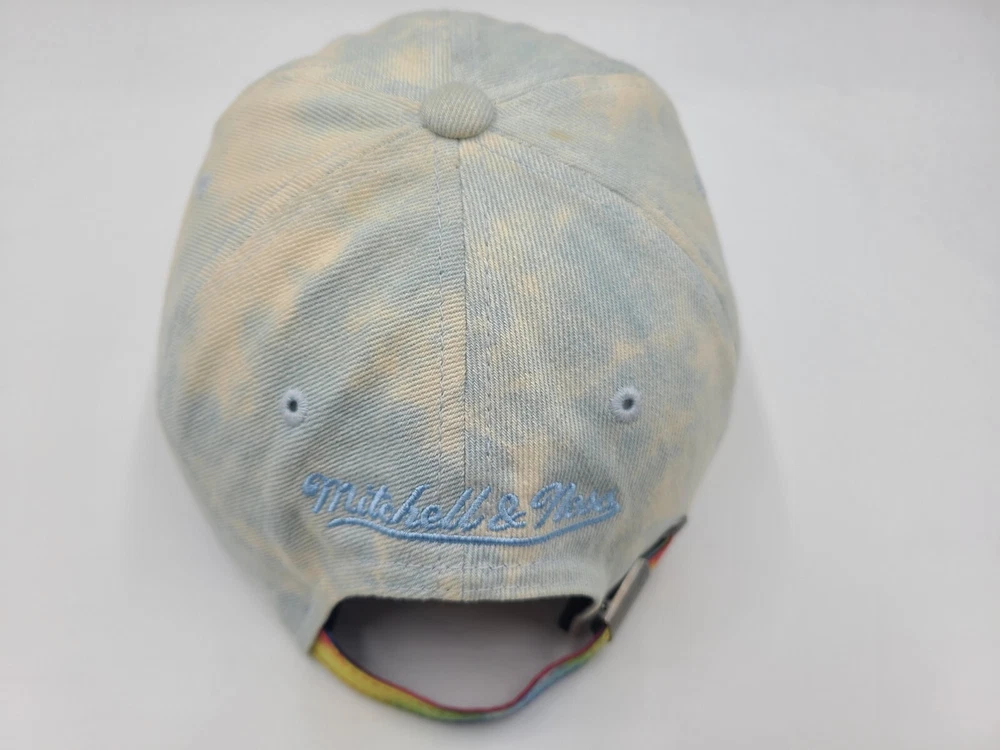 Has some stains/discoloration on the sides and underneath the brim as seen in photos. Chicago Bulls Mitchell & Ness Tie Dye Denim Strapback Hat Cap Men Women NBA Blue. EACH ADDITIONAL HAT PURCHASED IS ONLY $1 ADDED SHIPPING!