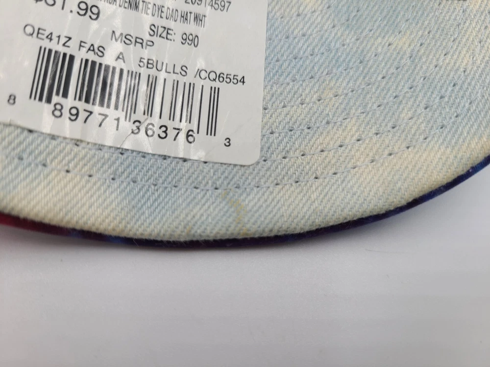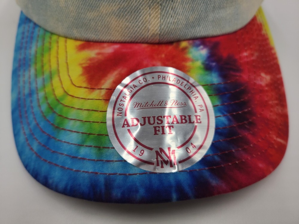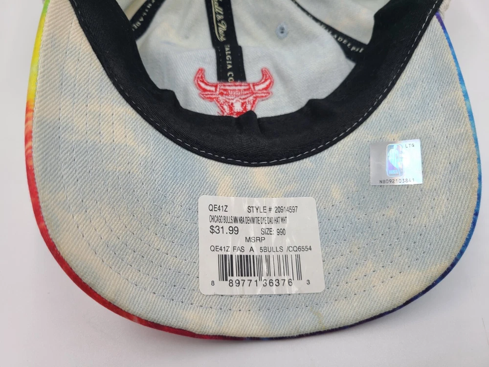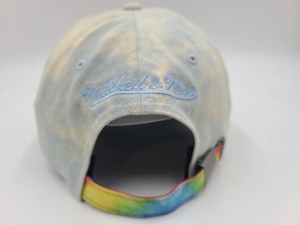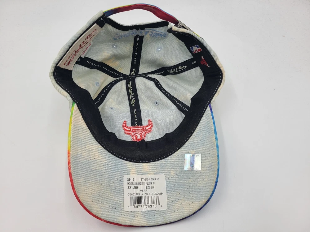 Has some stains/discoloration on the sides and underneath the brim as seen in photos. Chicago Bulls Mitchell & Ness Tie Dye Denim Strapback Hat Cap Men Women NBA Blue. EACH ADDITIONAL HAT PURCHASED IS ONLY $1 ADDED SHIPPING!