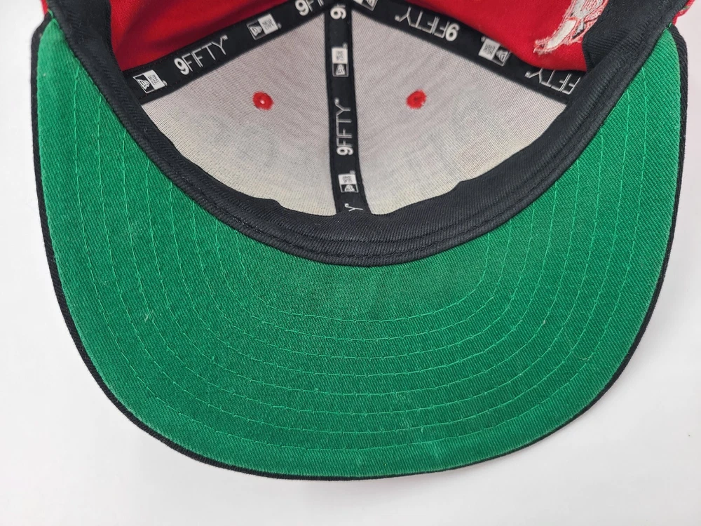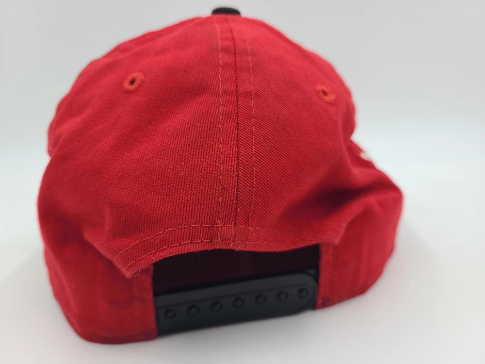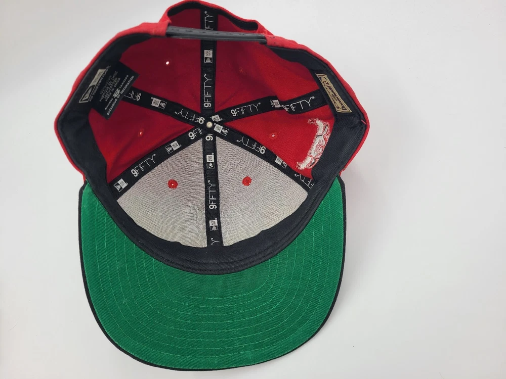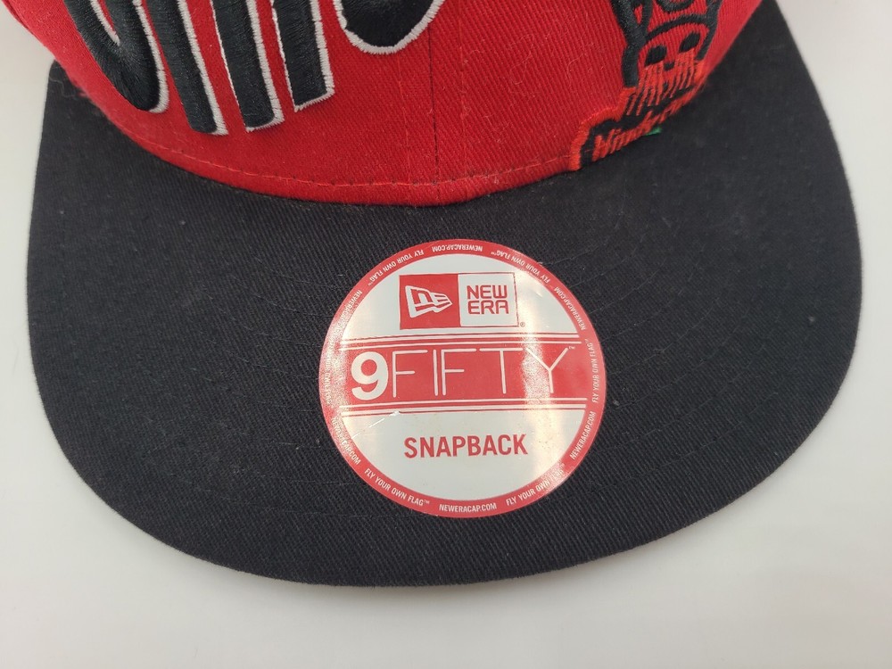 Has some stains/scuffs on the brim, side, and back as seen in photos. It also seems like there will be a mark left over if the sticker is removed. Chicago Bulls New Era 9Fifty Hardwood Classics Snapback Hat Cap NBA Red Black. EACH ADDITIONAL HAT PURCHASED IS ONLY $1 ADDED SHIPPING!
