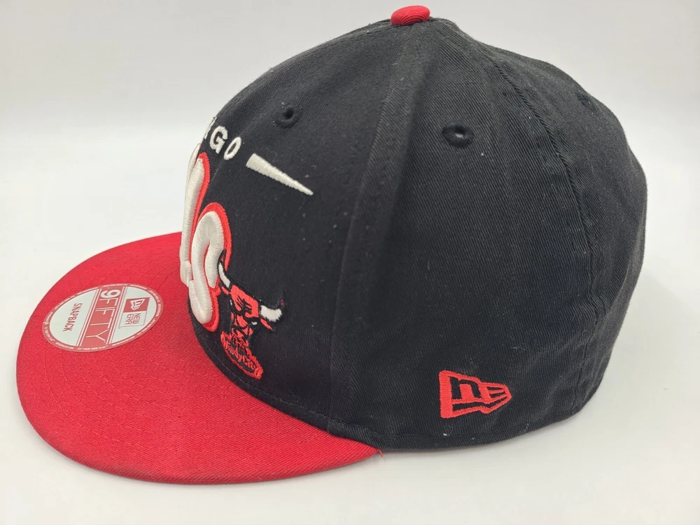 Has some stains/scuffs on the brim, side, top, and underneath the brim as seen in photos. Chicago Bulls New Era 9Fifty Hardwood Classics Snapback Hat Cap NBA Black Red. EACH ADDITIONAL HAT PURCHASED IS ONLY $1 ADDED SHIPPING!