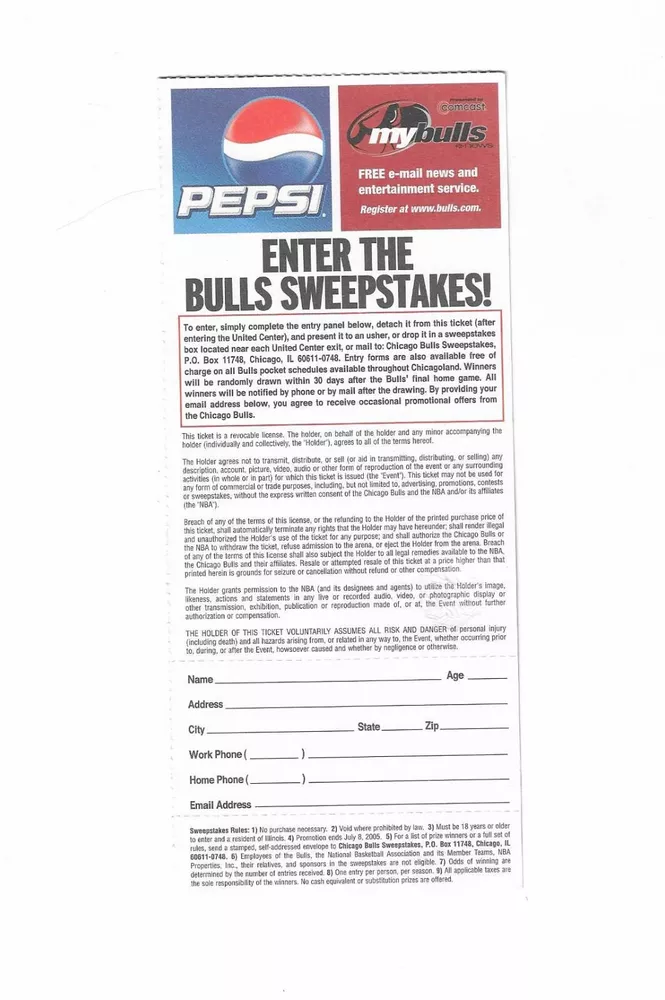 Chicago Bulls Finals Phantom Game A Playoff Basketball Ticket From 2005 Here is 1 Finals Phantom Chicago Bulls Game A Playoff Basketball Ticket from 2005. The game would have taken place at The United Center in Chicago, Illinois. The ticket is in good condition and would make an excellent addition to your collection. Payment Payment is due within 24 hours of sale. Shipping Your item will be shipped within 24 hours of receipt of payment via US Mail.
